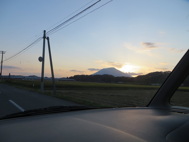 先週の土曜日好摩駅裏の道沿いを走っていると、沈む夕日が「寿」に見えた瞬間がありました。その夕日の差し込みで辺り一面が黄金色に輝いてもいました。