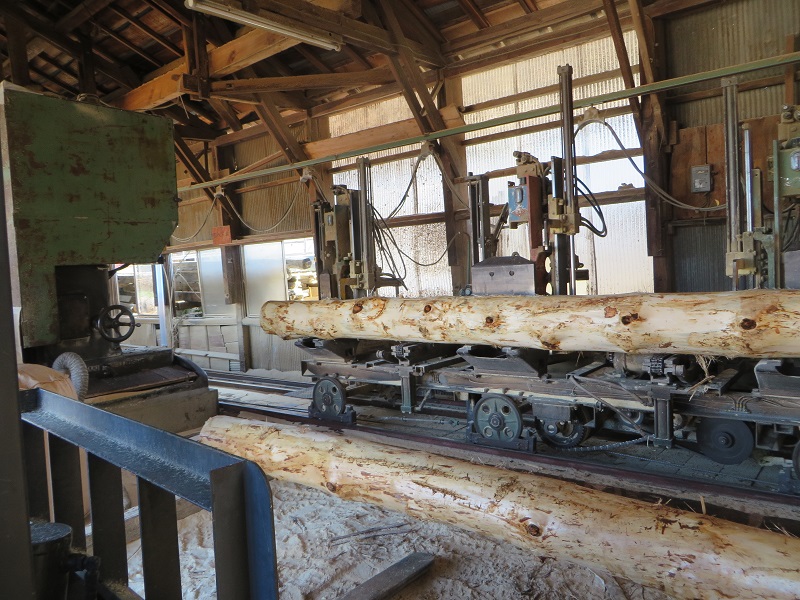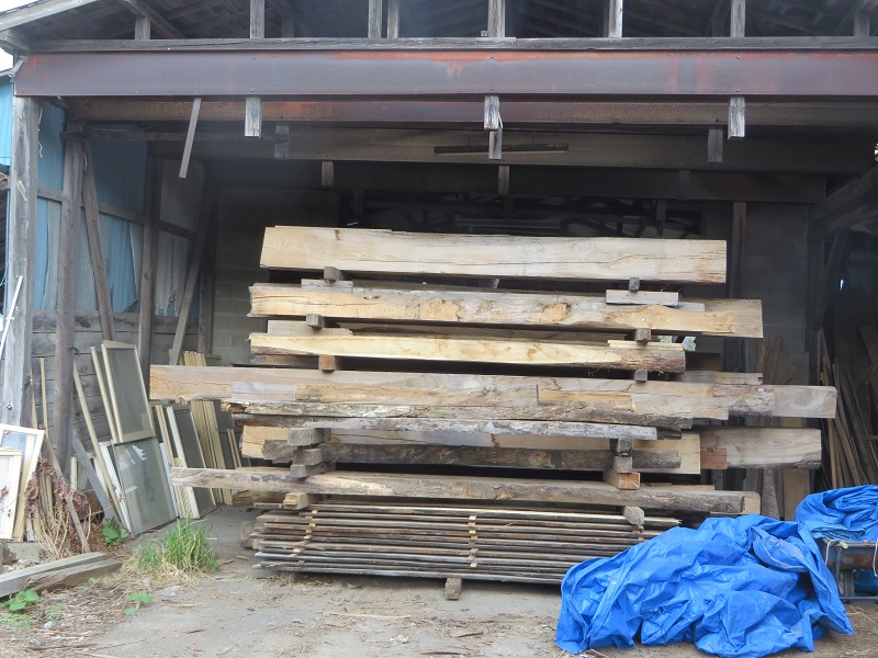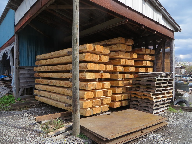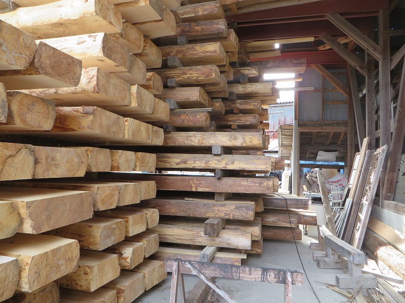 5年前からの長材の在庫が奥で、手前に今年製材の梁材が積み置かれました。