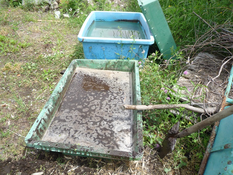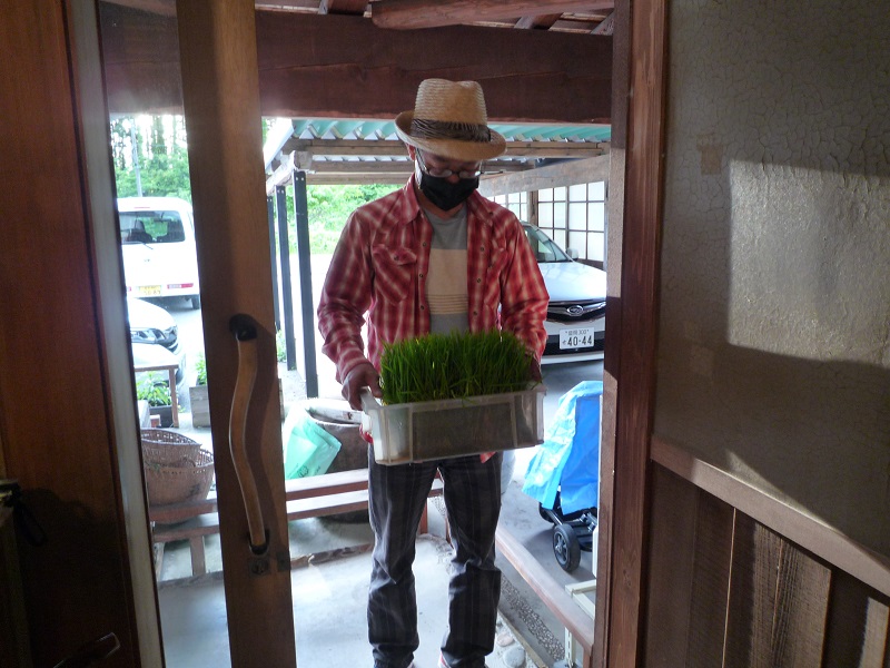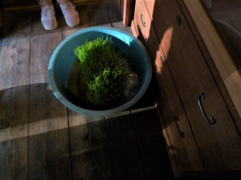 今年も当社樹内に箱田圃を造り稲を植える事となりました。当社の農家大工に田植え時に余った稲を貰い受けて、と云うより、ちょうだいとせがんで持ってきてもらいました。そして昨年同様に左官仕事で使う左官船箱に土と水に馬糞肥料を入れて泥箱田圃を造りました。土が落ち着くのを待って田植えする予定です。