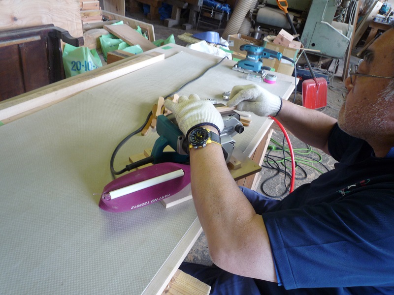 昨日のように、大勢集まった瞬間を捉えて、北上の新築工事の上棟時に貼る予定の2階天井板の準備も若手の皆にやってもらいました。3時の休憩用にと、岩手町のだんごやさんに焼きだんご買いに行ったのですが、3時に間に合わず、仕事終わりのタイミングとなってしまいましたが、キャベツマンさんの焼きだんごは絶品です。
