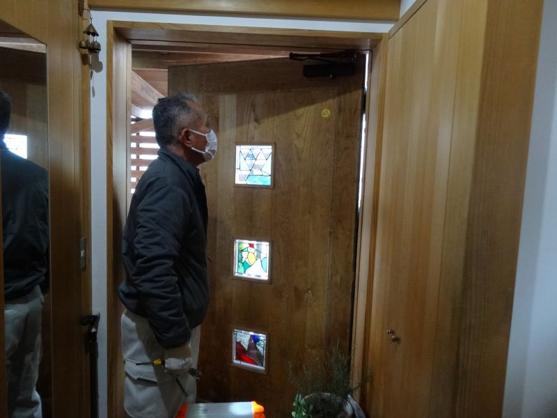 何故かレバーハンドルのドアが開かなくなったとの連絡を頂いて、直ぐに駆け付けました。レバーハンドルを外してみると、固定部の締める必要があるビスが緩んでいるのを発見してきちんと締め直すと解決しました。また、別なところでは、玄関ドアの締まりが悪く最後のところで、きちんと閉まらず隙間になるっ状態でしたが、ドアクローザーを調整して直りました。ここをドライバーで回して調整できると知ってはいても、案外上手く出来ないものです。奏したときに、当社へ困った連絡をご遠慮なくいただければ、直ぐに駆け付けます。建築屋は直し屋への変身を致します。