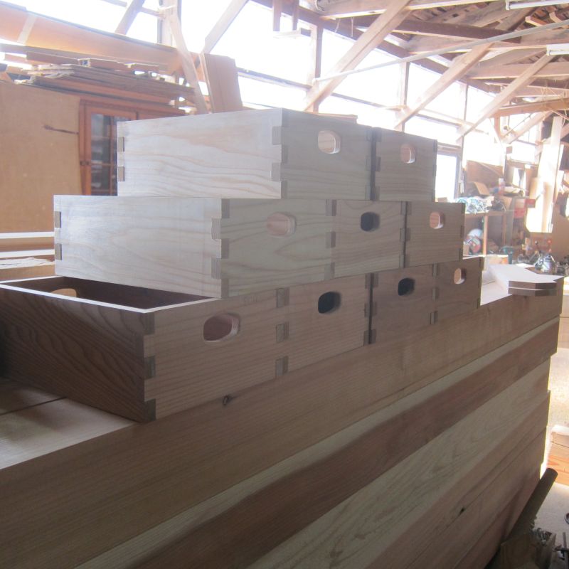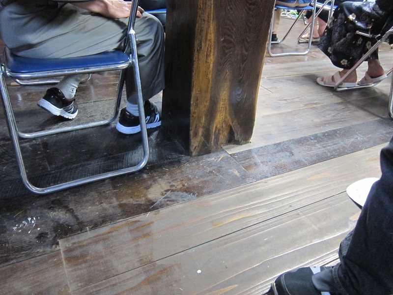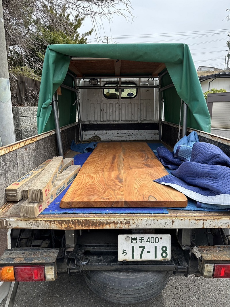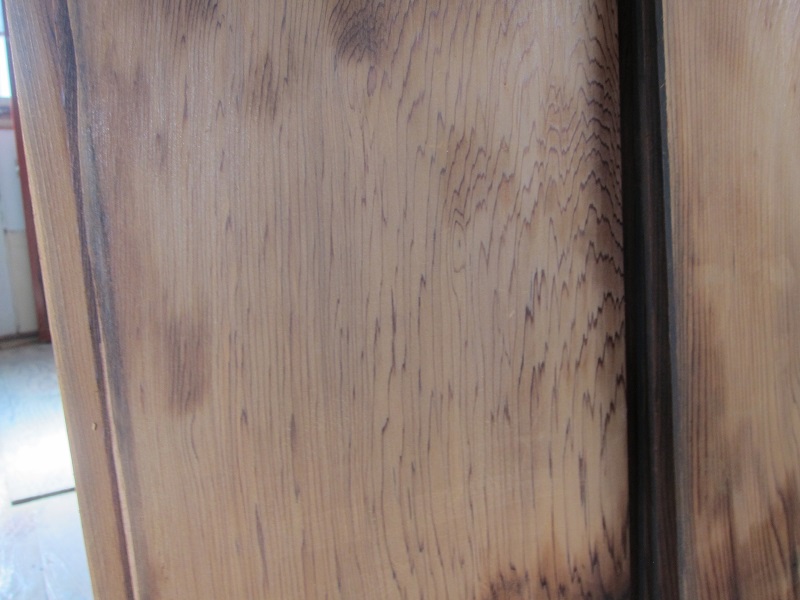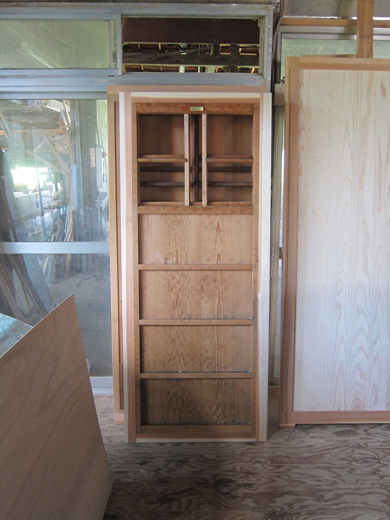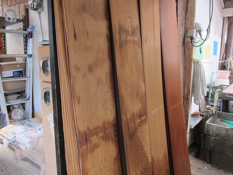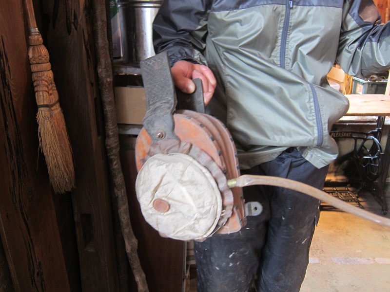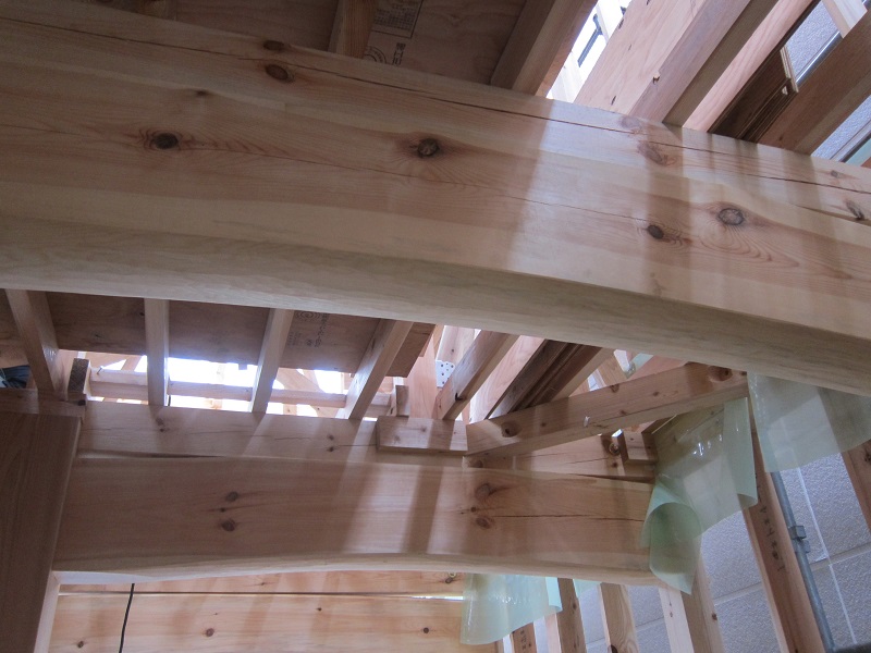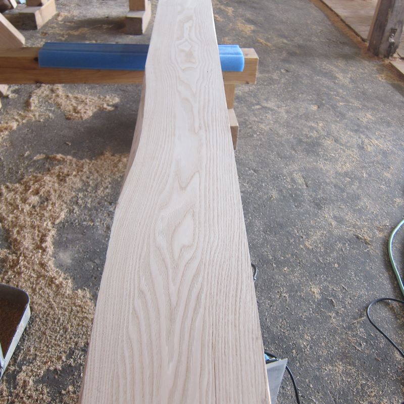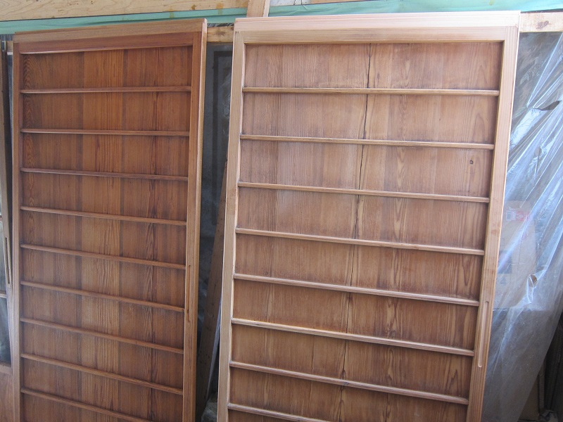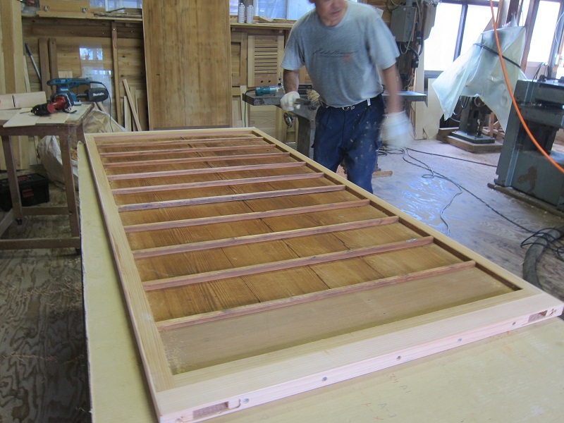 毎日修正挽を続けています。写真は修正挽前は古びた感じになっていたのに鋸を通すと綺麗な元木の木肌が見えてきたところです。残屑を吹き払いながらの作業が続いています。