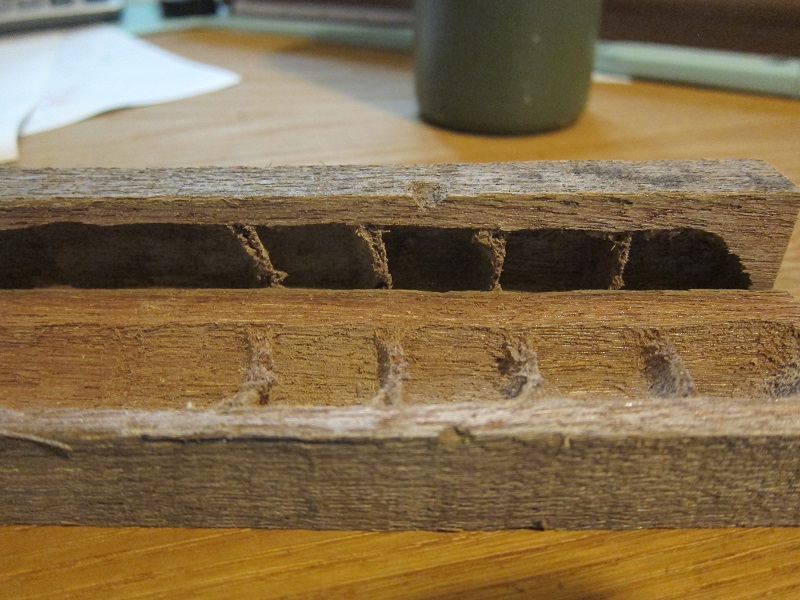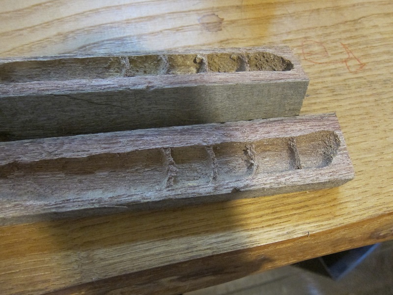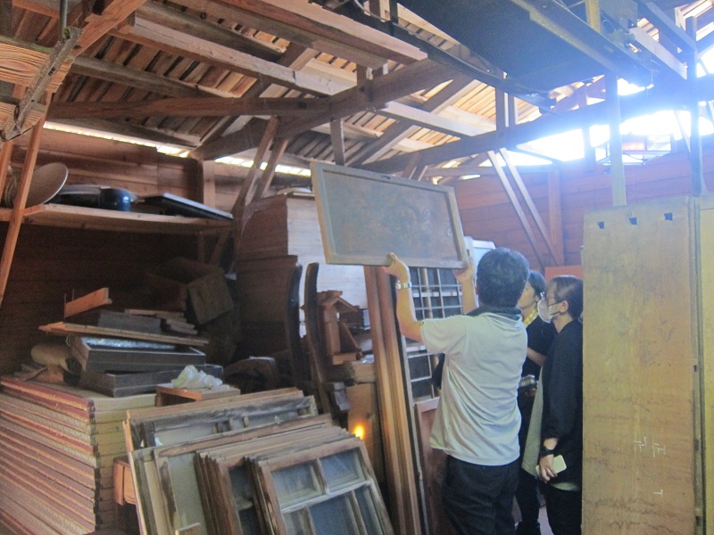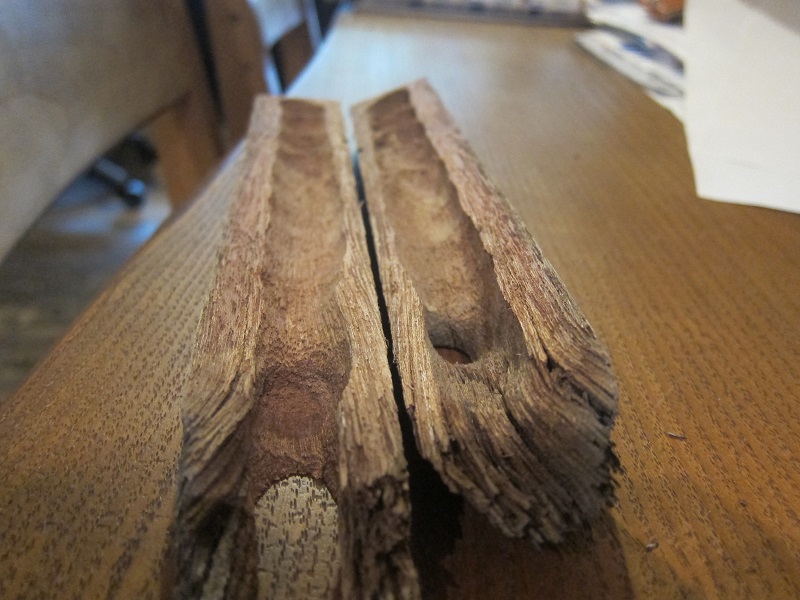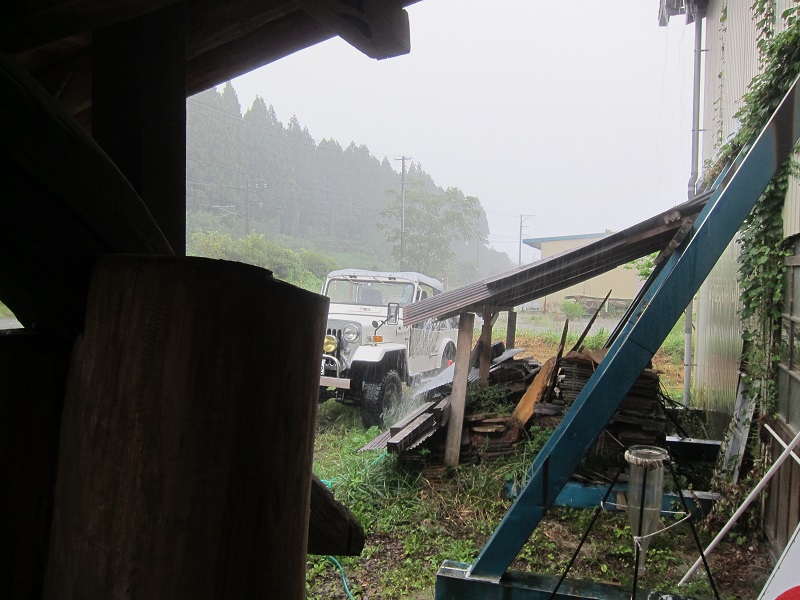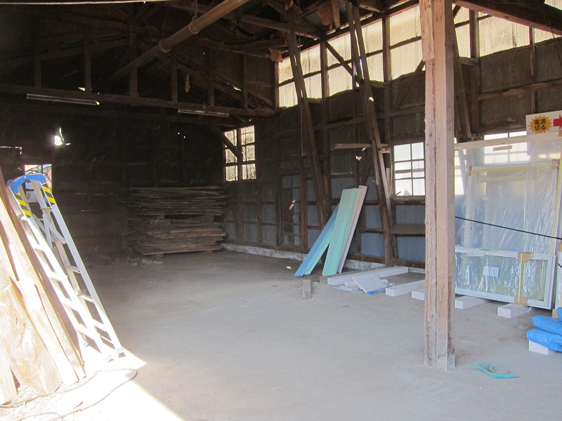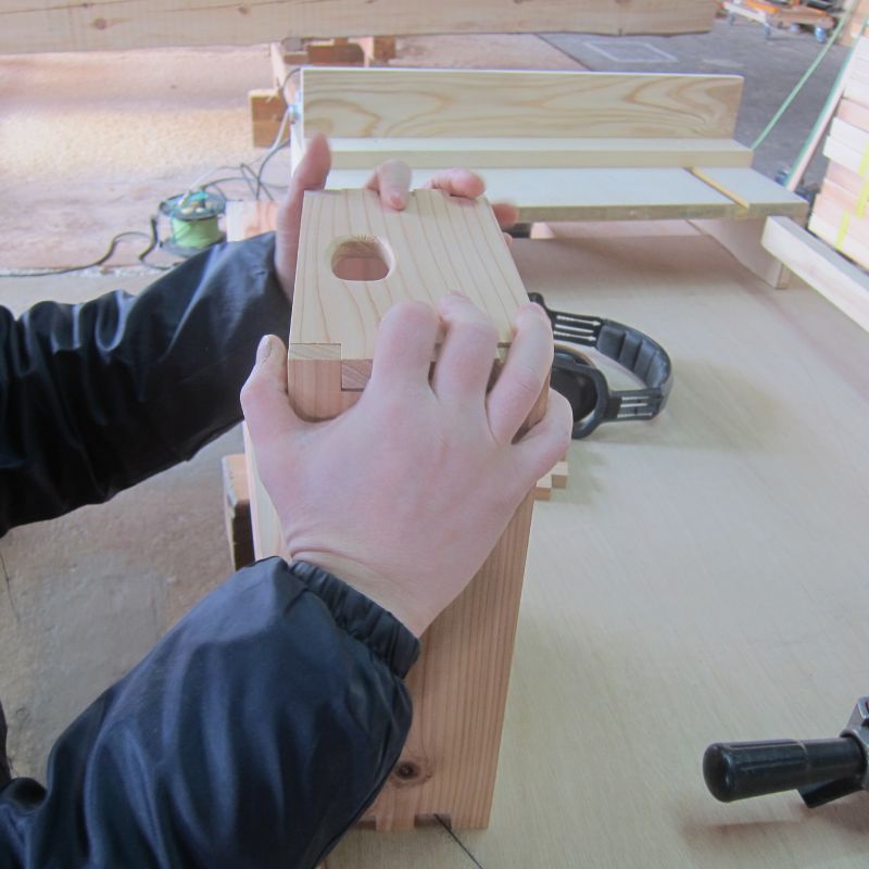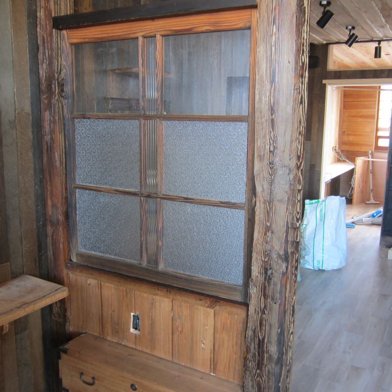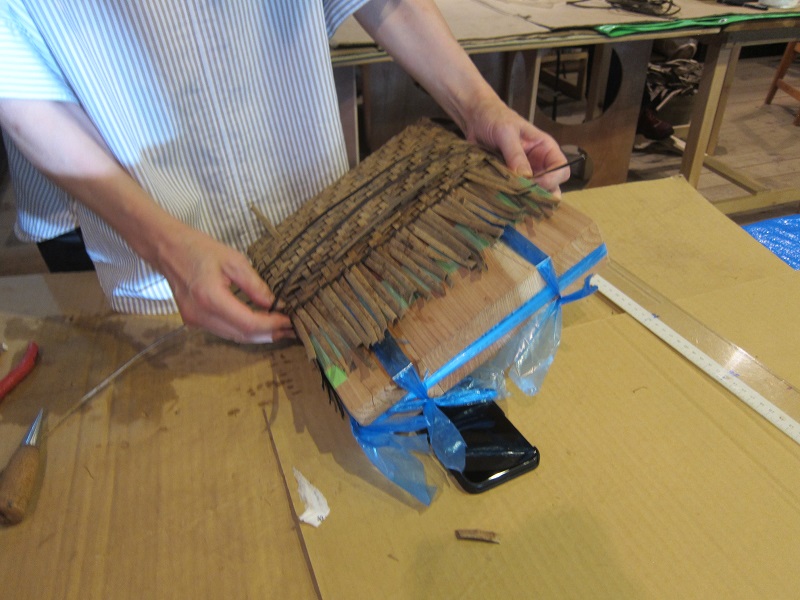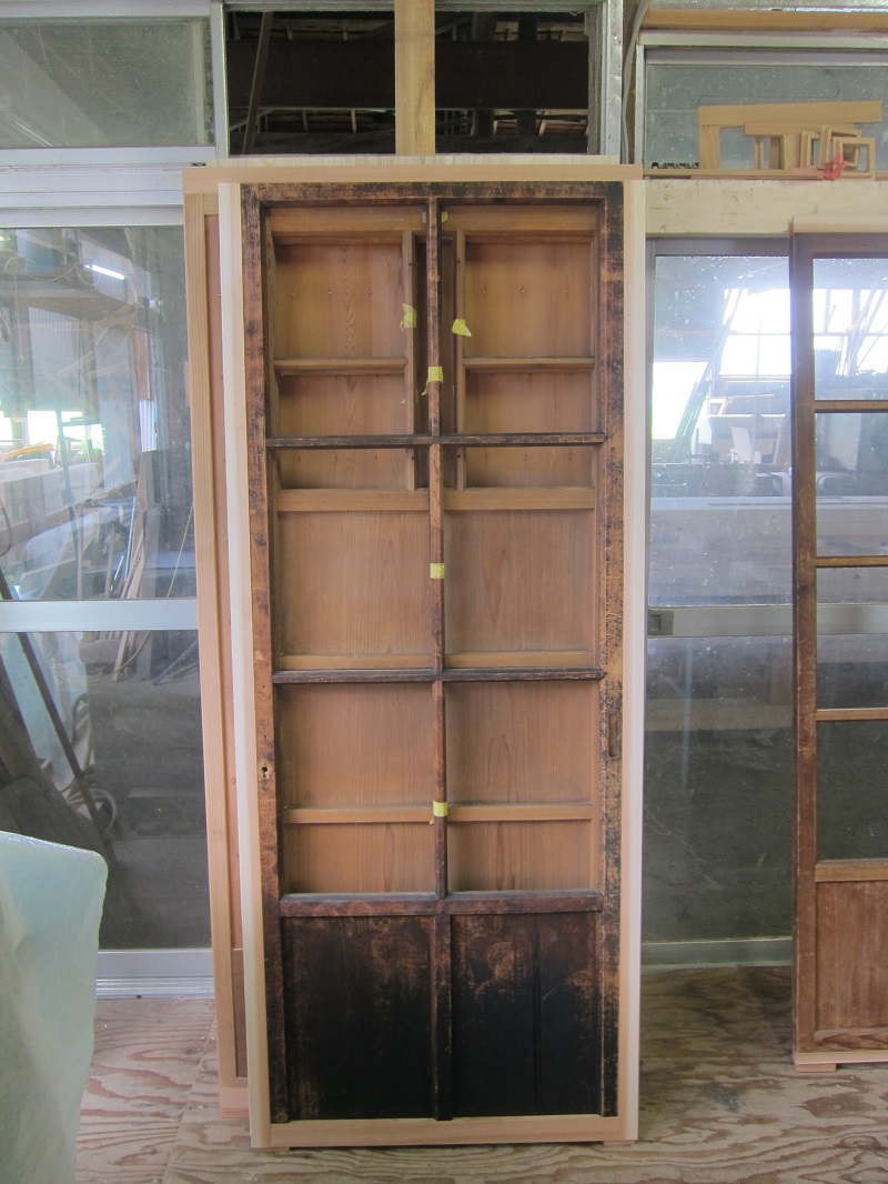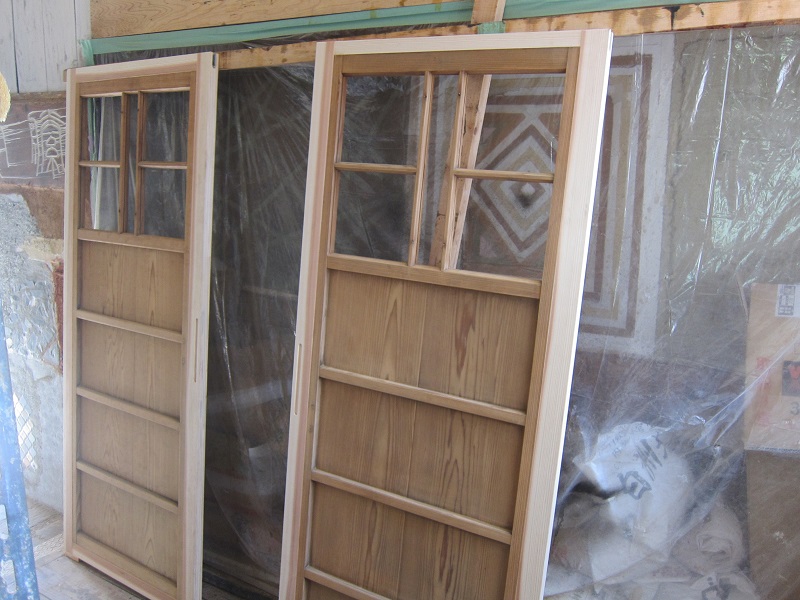 毎日修正挽を続けています。写真は修正挽前は古びた感じになっていたのに鋸を通すと綺麗な元木の木肌が見えてきたところです。残屑を吹き払いながらの作業が続いています。