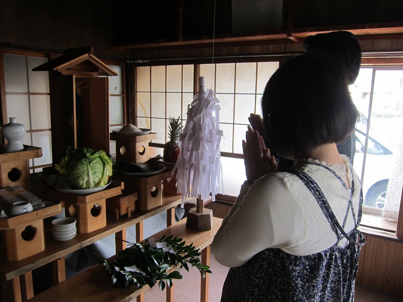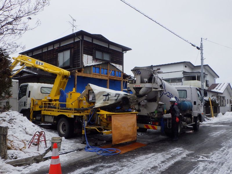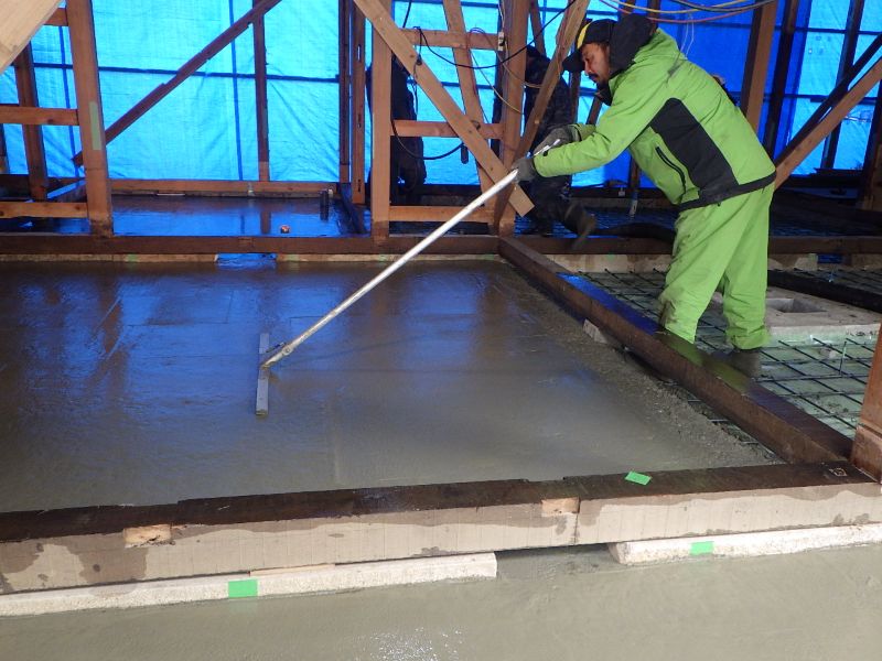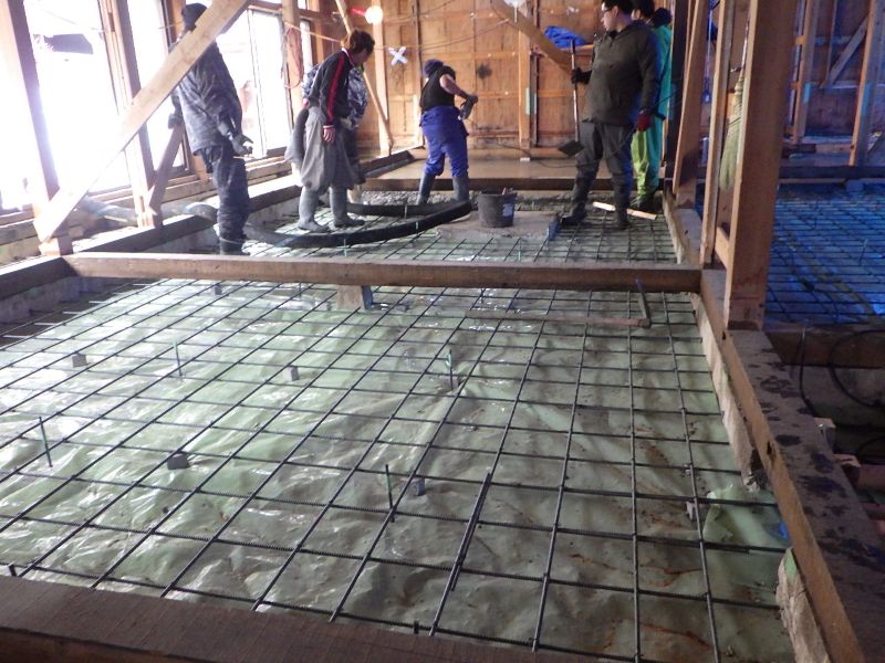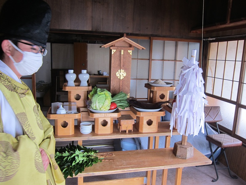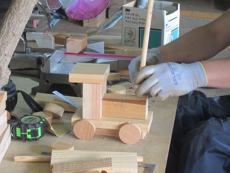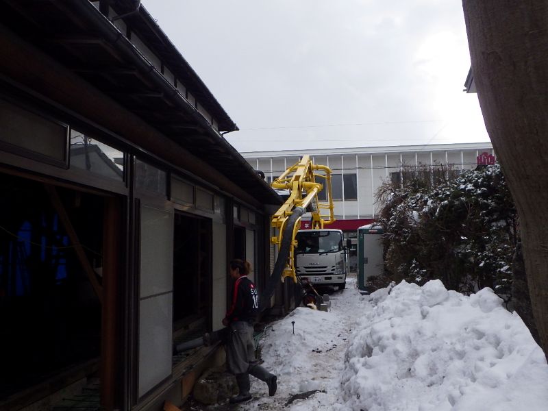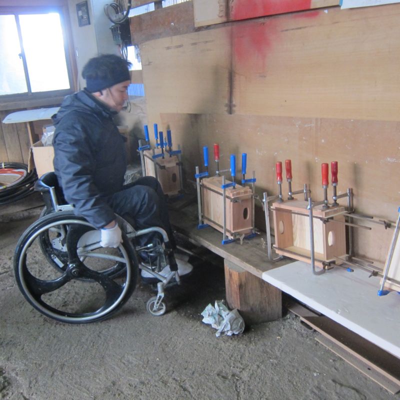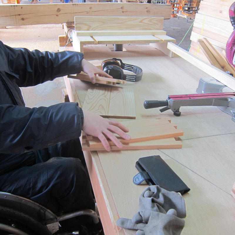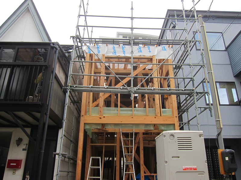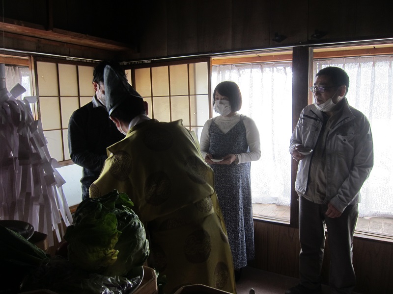 先日、次回鉈屋町での新築現場の構造材の木材の清め式が執り行われました。前日その準備に取り組む車椅子大工は、既に墨付けに取り組んでいて、四面自動鉋を掛けた土台の積み直しを車椅子に乗りながらこなしています。木材の清めとは、建て主様と墨付け手刻みを行う大工が共に、塩とお神酒で住まいに使用する構造木材の清めを行う儀式です。この時に、柱は雫石の杉で梁は米内川の上流で盛岡の街を水害から守ってくれた赤松で通し柱は岩泉町、他重茂半島の杉材などと木がどこから来て建物のどこにどの様に使われるかを説明させていただきます。特に桂の梁や、欅に漆、そして栗に桜など雑木も特に見える場所に配されるので、念入りにご説明させていただきます。そして、清めが終わり気持ち的に綺麗に白紙化したところで、初の刃物を入れるのをお施主様にチョウナで実際に殴り込みハツリを行っていただきます。