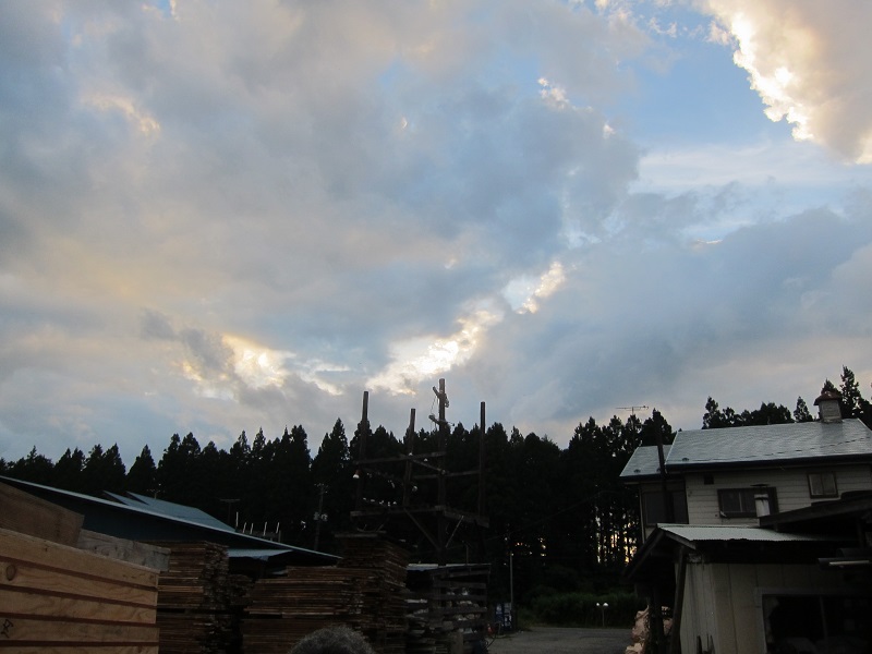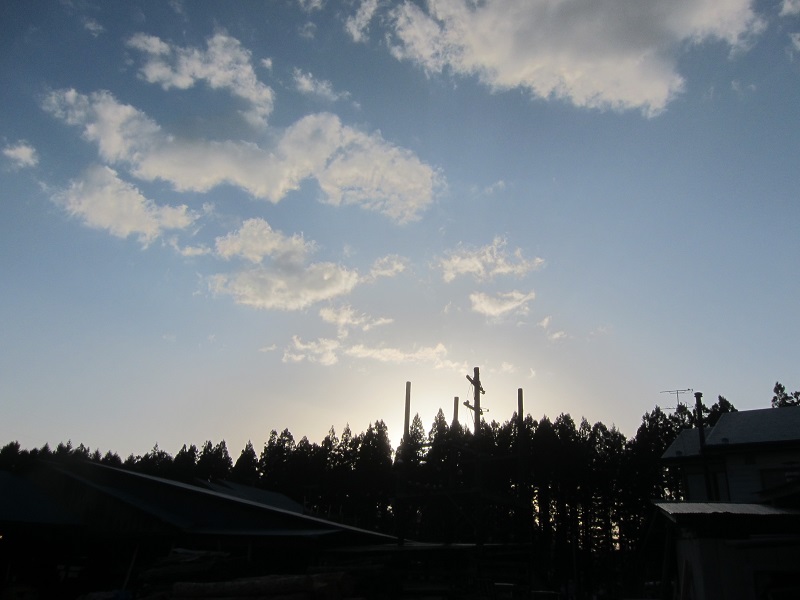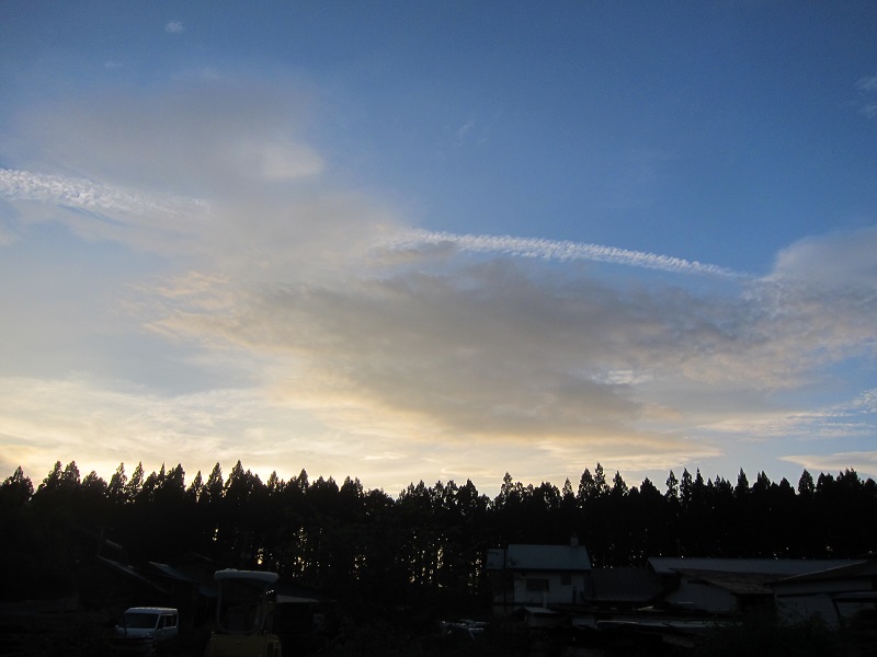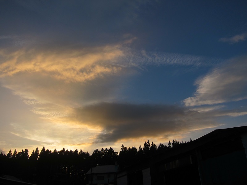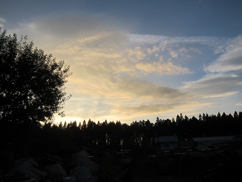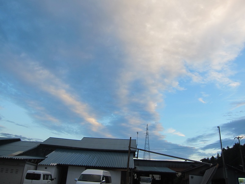 一昨日の帰り道夕焼け雲と共に帰りました。帰る前には、コーヒーを飲んで一休みして木の店の戸締りをして、一日の感謝を店内に告げて帰りました。