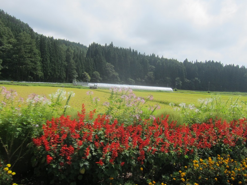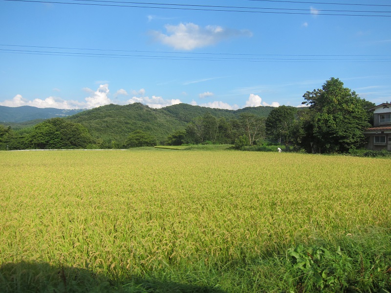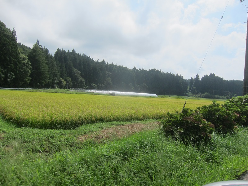 周囲の田圃は豊作の雰囲気を感じます。日が差すと黄金色に輝く身のの秋です。