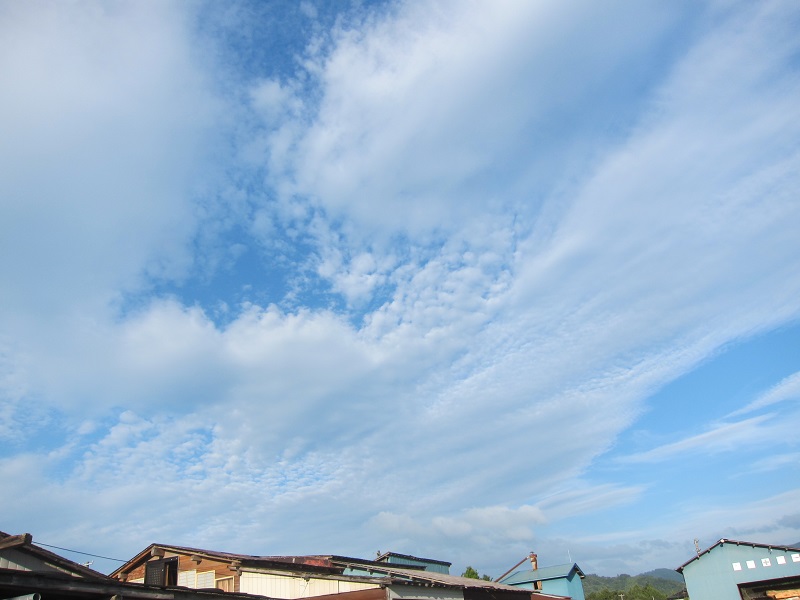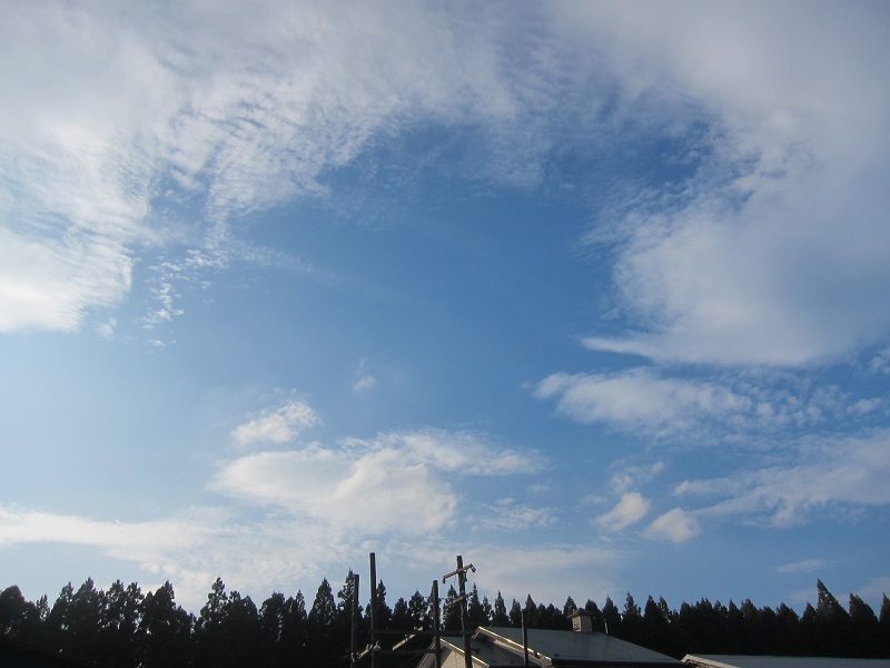 秋祭り準備の音が聞こえる八幡神社方面の上空に虹がでていました。綺麗なアーチでした。