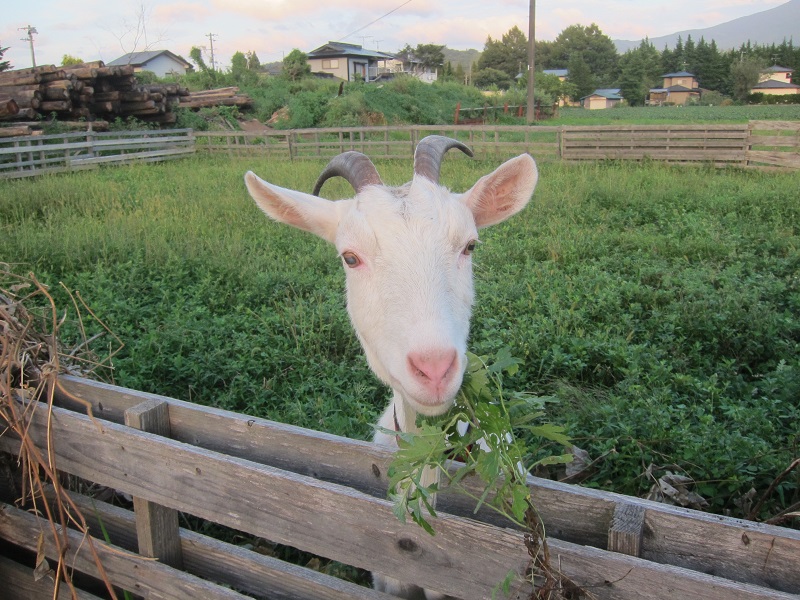場内には葛の蔦が絡みついて困ることが多くあるので、早めに刈り払いするのですが、山羊はこの葛がだい好きです。