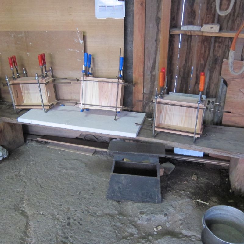 まな板や古い木の小さなテーブルなどの修理もさせていただいています。今回はまな板の削り直しと隙間が空いていたところを埋めて天板を綺麗にする修繕をさせていただきました。それと木のフレーム額も・・・