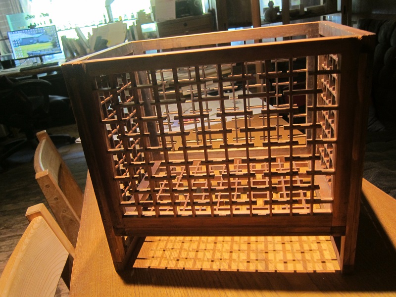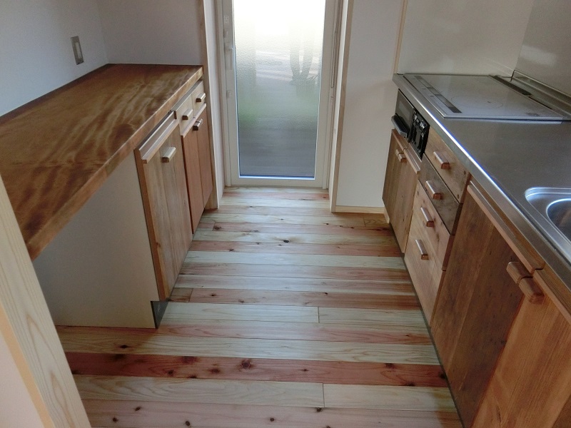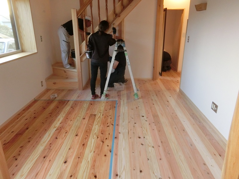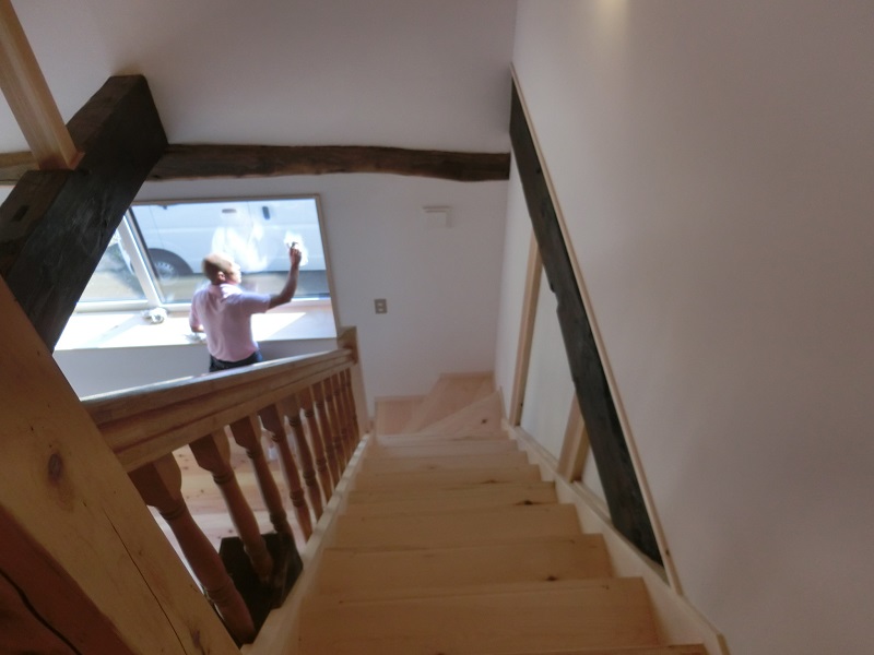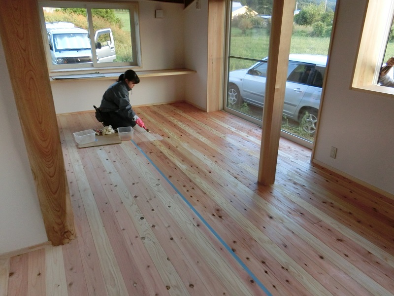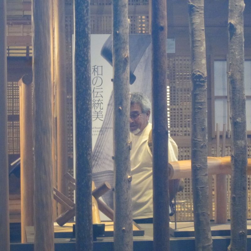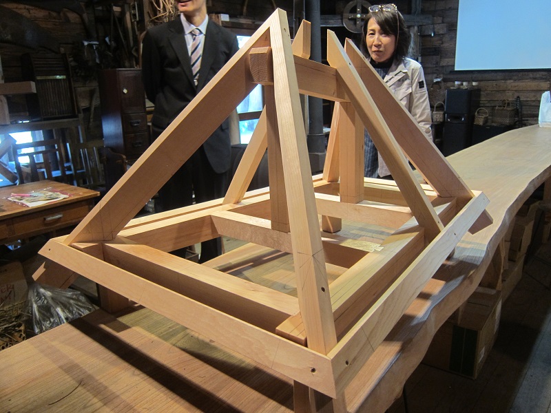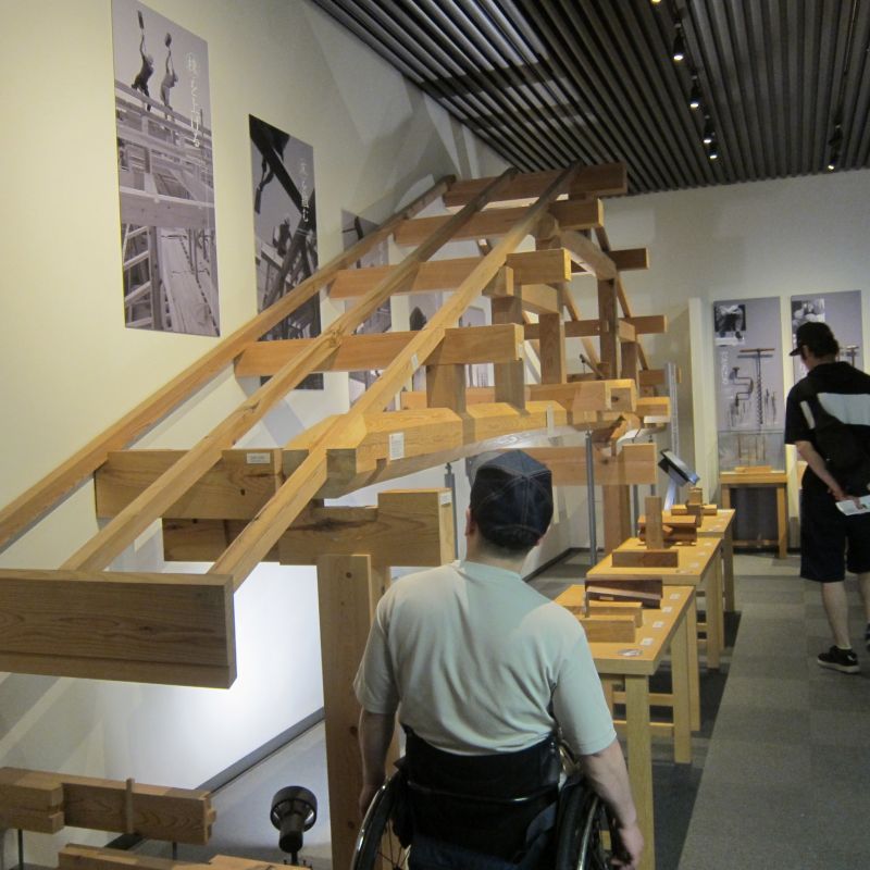 古材活用の工事が色々と進んでいます。設計担当も初めてのことなので、車椅子大工から学んでいました。