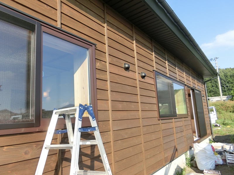 瓦屋根から雨漏りしているとの事にて、修理で上がってみると穴が開いていたので、無理なからんですね。瓦を外して、下地を合板で張り直してブチルシートを張り込んで雨漏れは止まりました。今日はここの上にアスファルトシングル葺き屋根を葺いて仕上げます。ウインチで荷揚げしながらの作業です。天候に左右されるので、晴れる事を願いながらの工事が進みます。→本日無事屋根葺き完了です。