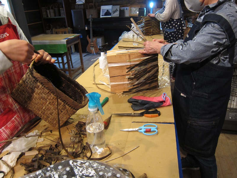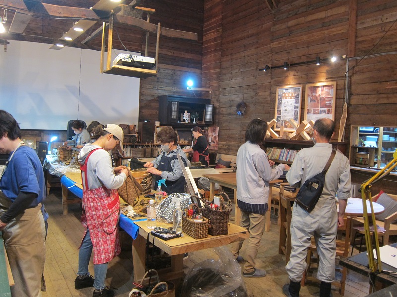 取っ手や引手の取れた古い桐箪笥の周囲をしながら丸座の椅子造りしていました。多分100年前の古い丸座の椅子をお手本にです。古いもんは直せるだけでなくお手本にもなります。