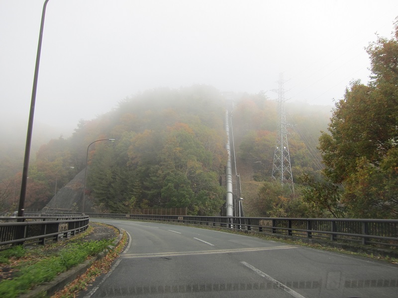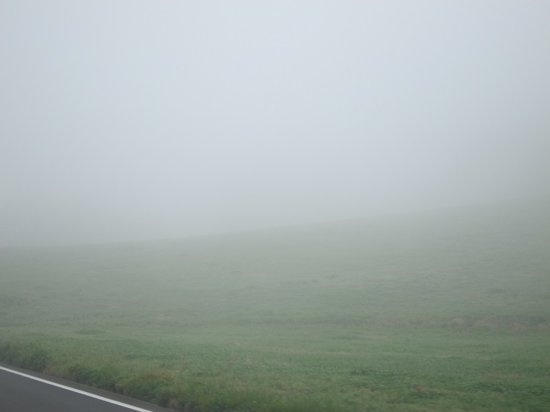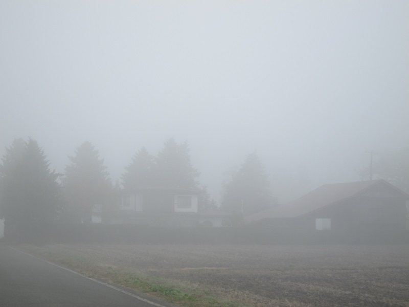 今朝の通勤路の風景です。山の頂が白く見えたり、別の山は白く三角なはずが雲で隠されていたりとで、道路脇では不思議な蒸気が出ていて、道が開けると冬間近い凍てつく草原が目に飛び込んできて、水力発電の高所には工事中のクレーンがそびえていました。こんな風景を眺めながらの30分が何時もの通勤路です。
