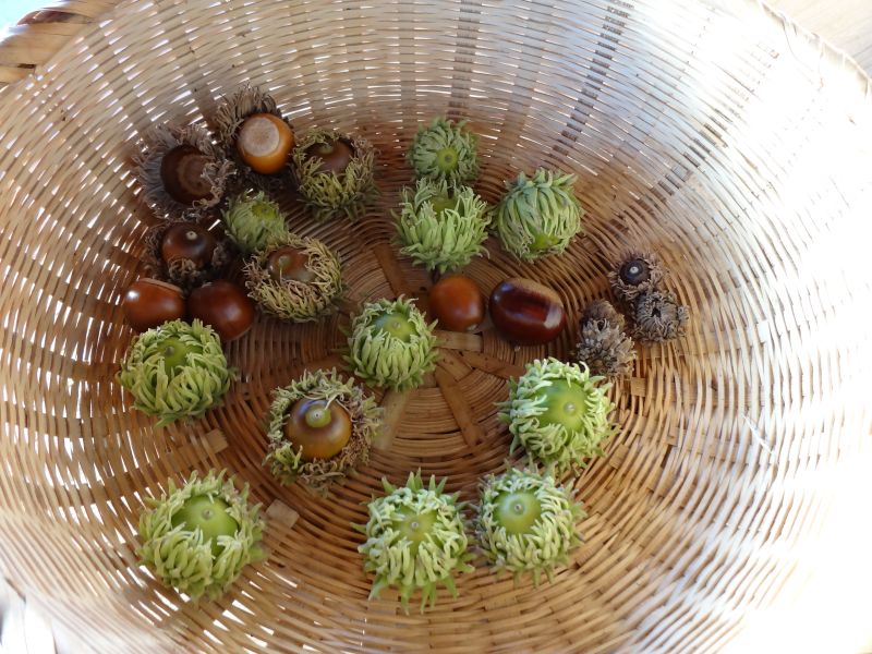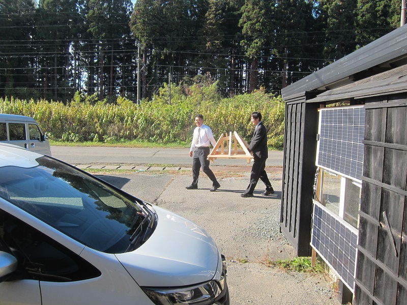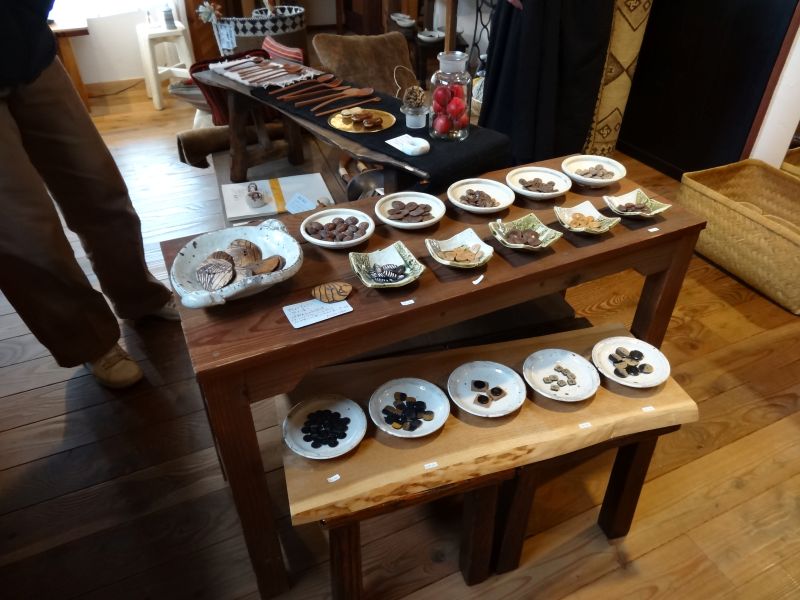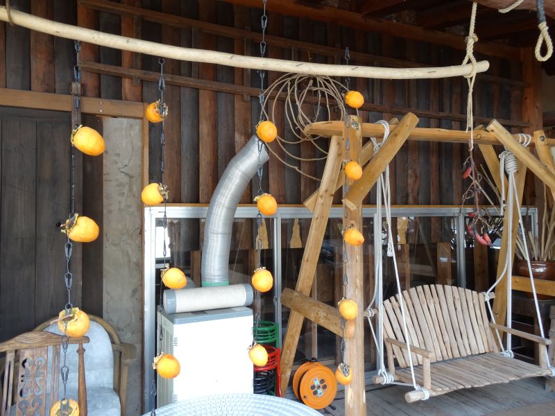 好摩の当社場内を歩くと、自然の遊び心を感じる場面に出会います。かぼちゃが自ら木の又にはまっていたり、コガネ茸の集団暴走と笑ってしまいます。また、黄金パークでは、可愛いどんぐりを今年も発見です。また場内に戻り、干し柿も山小屋は熊が怖いので、道端側に干していました。その下には古椅子が並んで、次回の古民具市用ですね。古民具というよりもテーブル祭りをしてみたいと思っておりました。