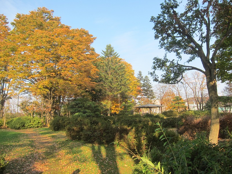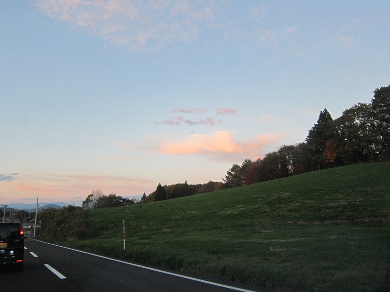 信号待ちで止まっていると道路脇に岩手大学の紅葉が見えまして、高松公園から見えるトトロの森に夕日が差し込んでいたり、積もる落ち葉やどんぐりが見事です。クマの目撃情報がなければ、何時もの美しきが楽しめる近場の景色です。道中は落ち葉が袋詰めされて並んでいますから、地域の方々がみんなで落ち葉拾いしているものと思われます。