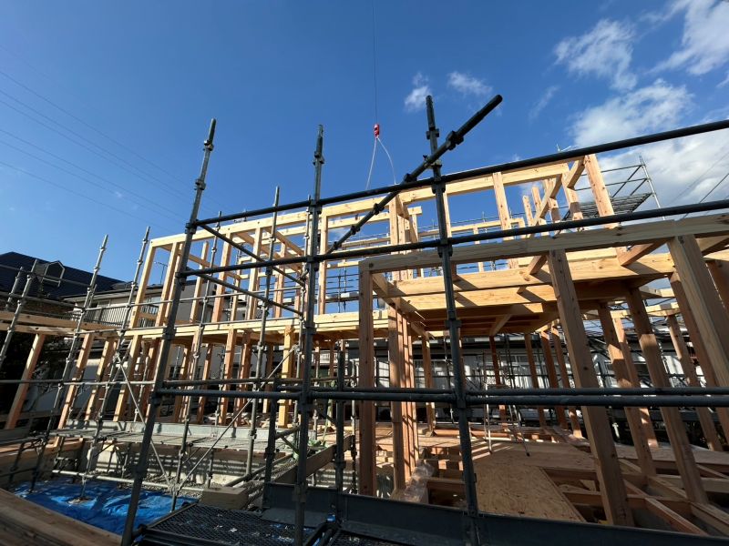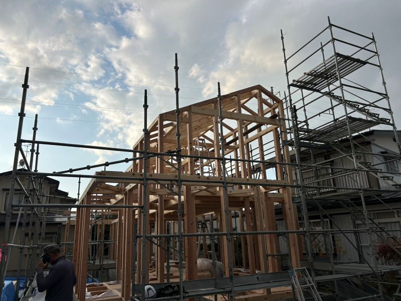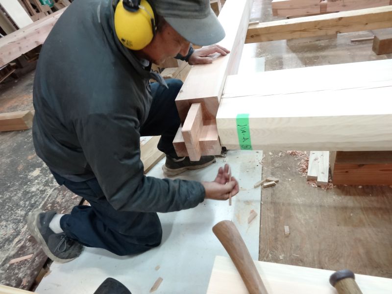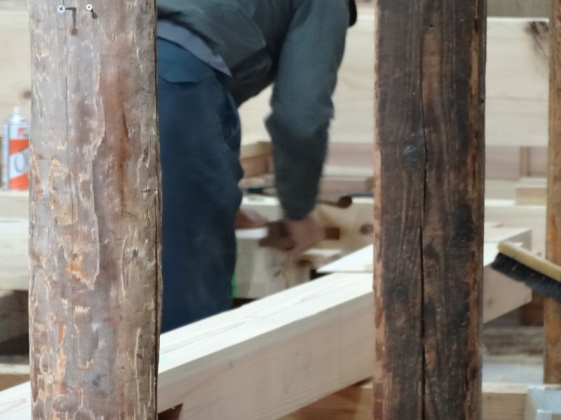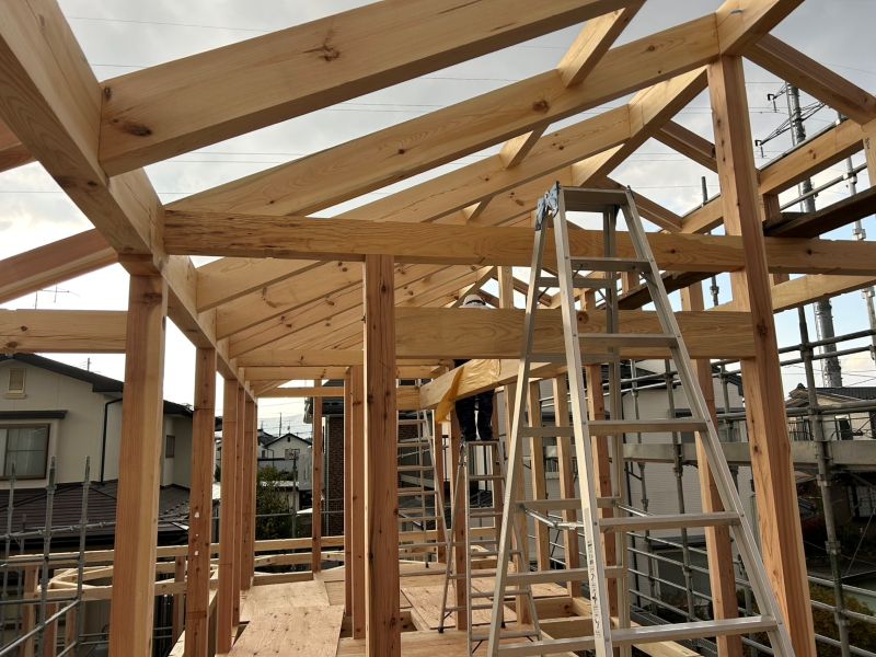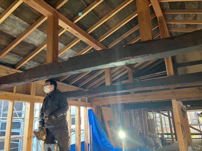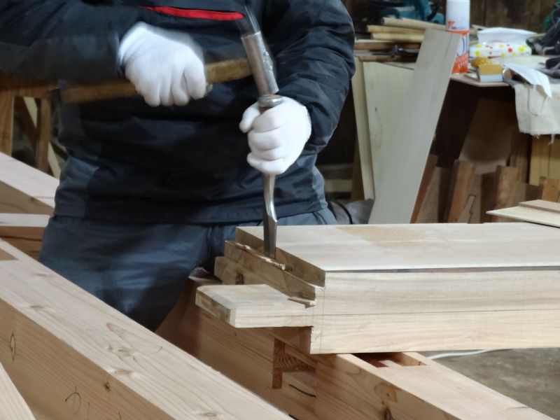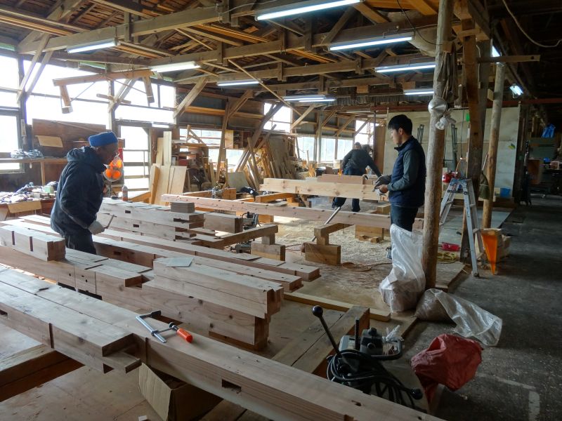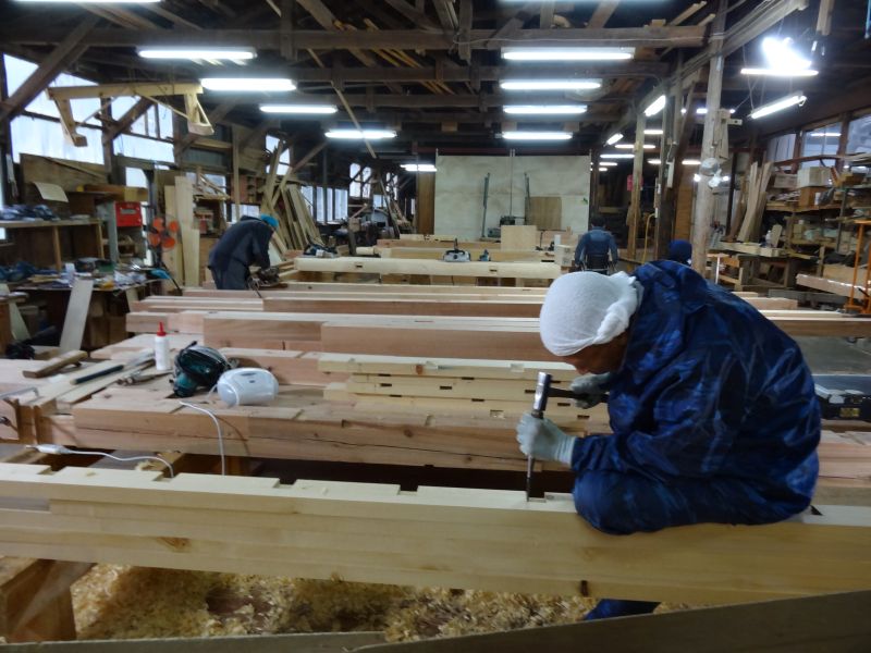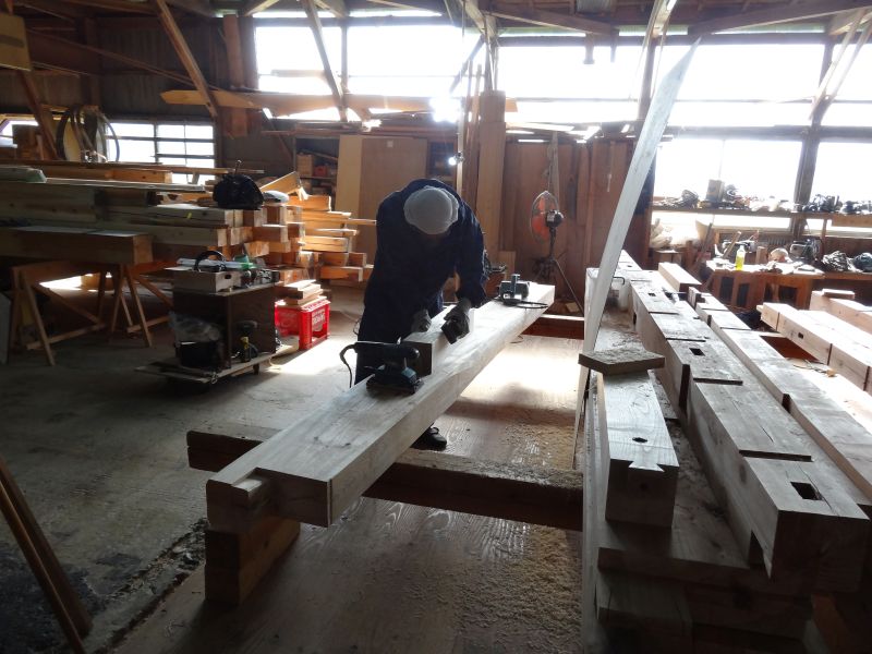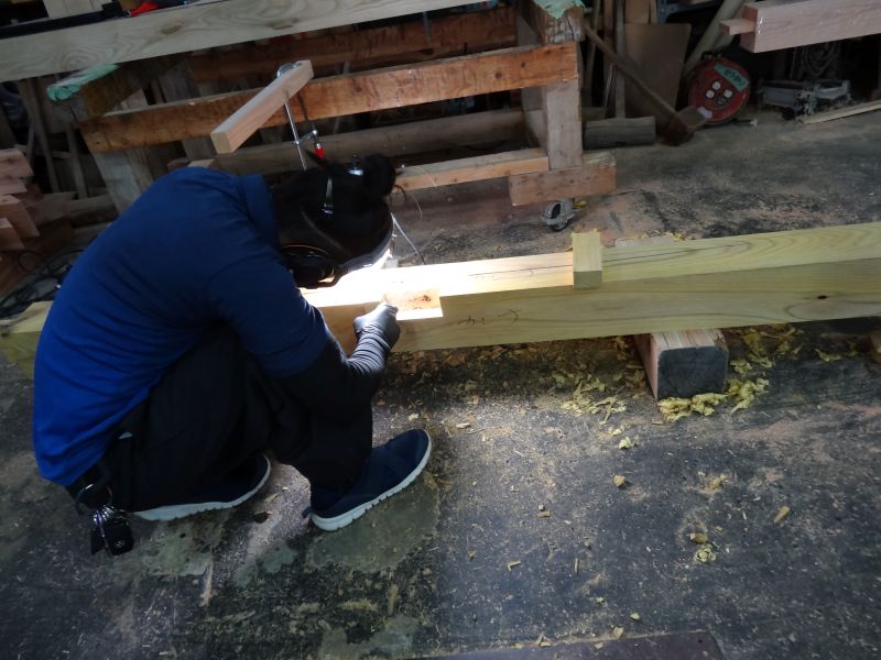 基礎工事が進む鉈屋まちでの新築工事は、手刻みが大方です。終盤に差し迫った手刻みの様子を写真でご紹介させていただきます。