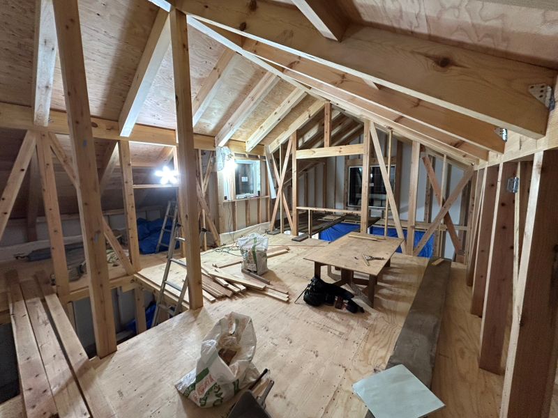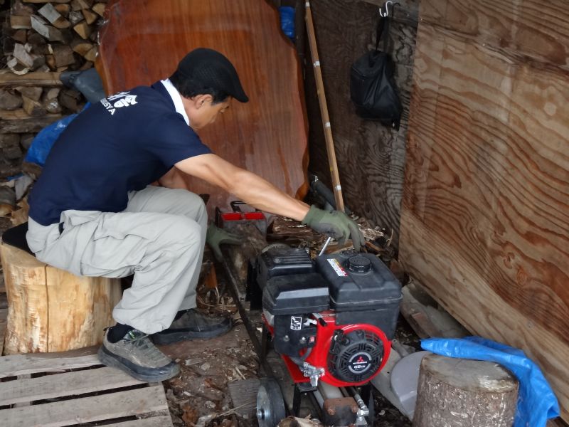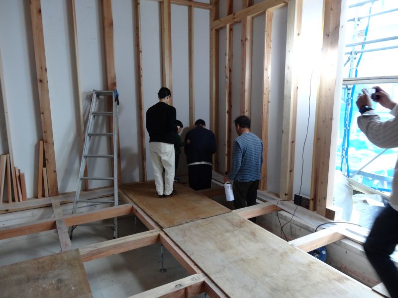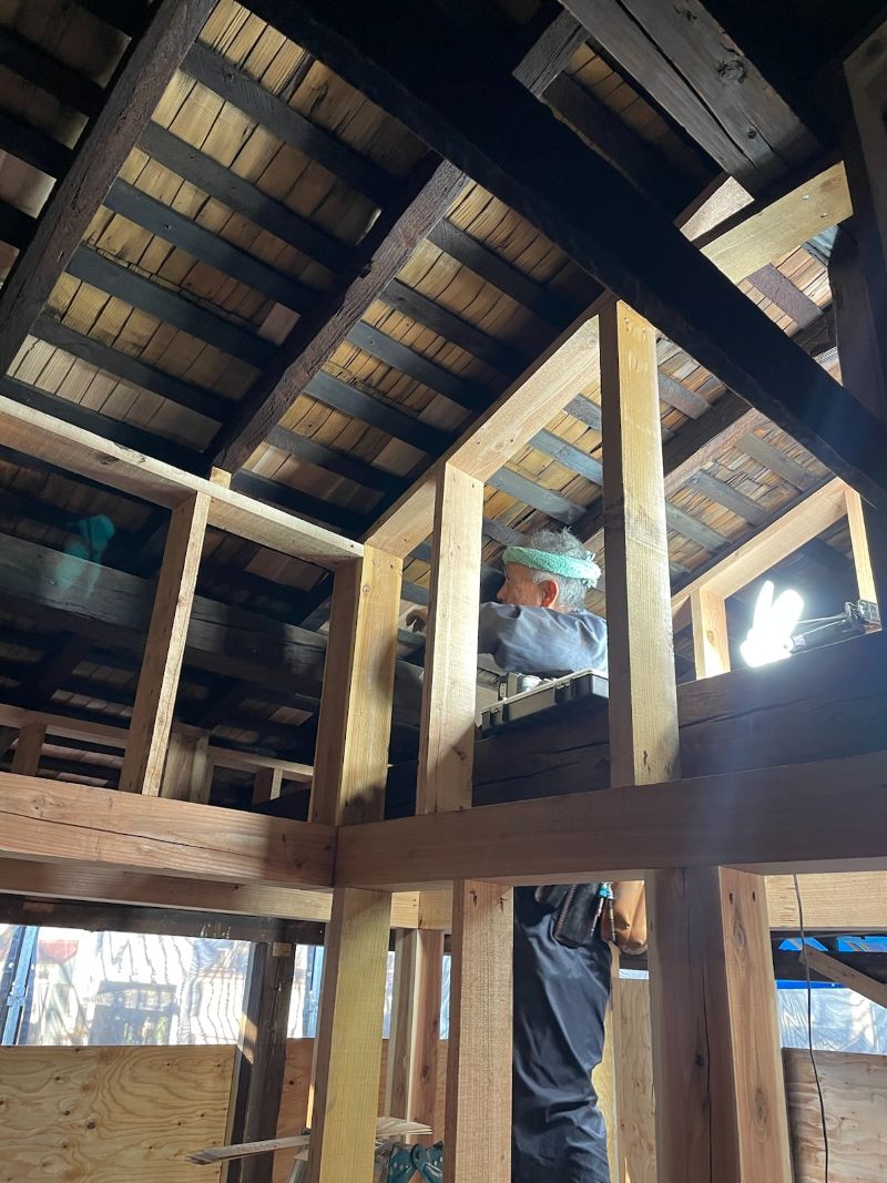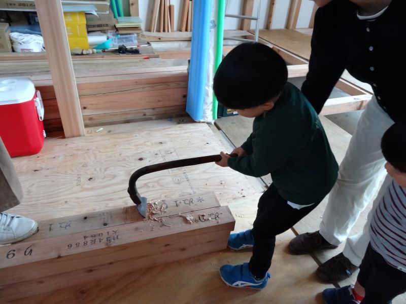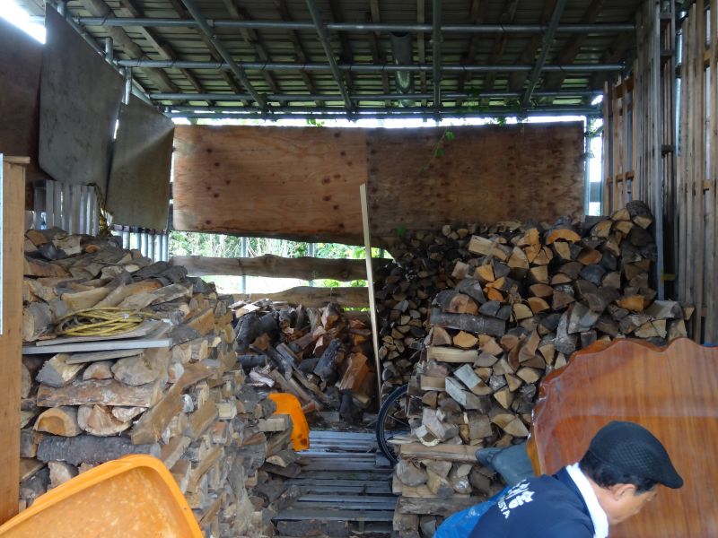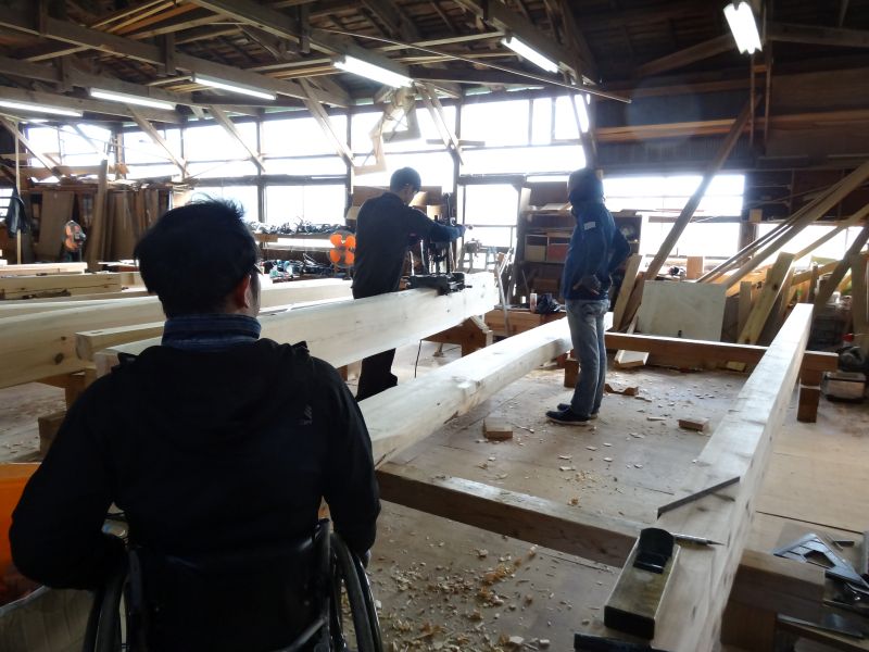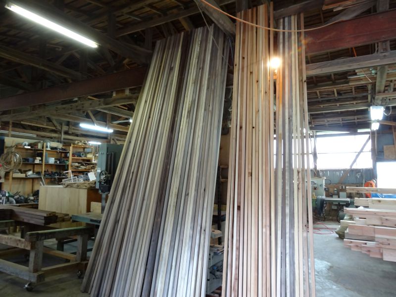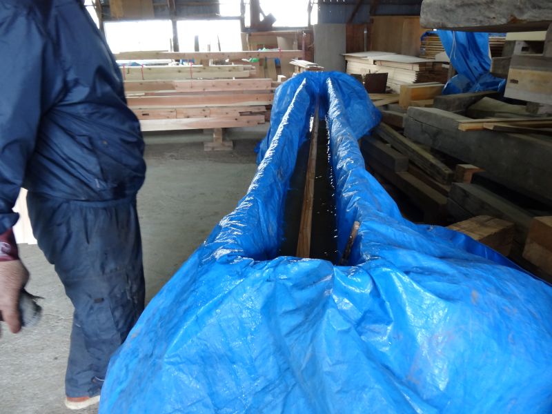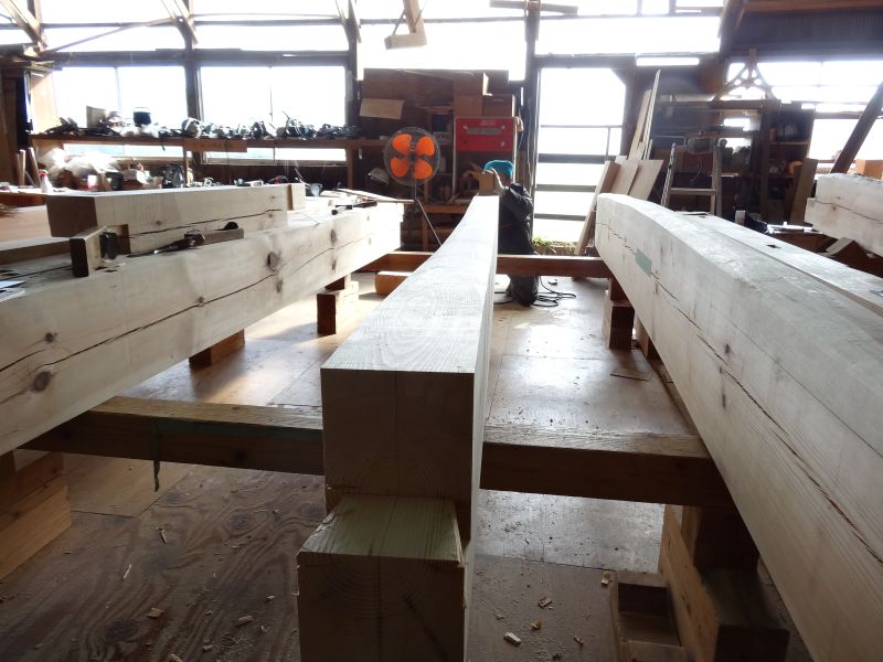昨日の作業場の光景です。たくさんの箱造りと鉈家町の新築工事の手刻みが進んでいて、木の香りが充満して、手道具を叩く音が響くいいかン時の場内です。