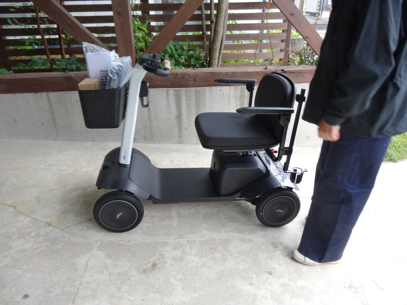 マイカーが届いたので、早速市立図書館まで行って、自分時間を楽しんできました。最高速6kmの歩行者扱いのシニアカーですから、自宅から車での送迎は片道10分以内でしたが、1時間掛かりました。しかも、図書館前の歩道はタイルが剥がれて90度カーブのところに段差があって、ここで、初乗り初事故を起こしながらの苦労と涙の末、図書館での読書を満喫できました。脳出血で左半身麻痺となって、車の運転を禁じられた高次機能障害の身なので、杖を突いての一人歩きよりは荷物も運べるし自由に動ける有難さの精神性の良さが格段に上がりました。次の目標は一人買い物ですね。最長30kmまで可能との事にて、いつかは会社までいって見たいですが歩くのと同じだから天気の良い日でないと駄目ですね。実はこの日の帰り道も雨が降ってきて慌てました・・・・