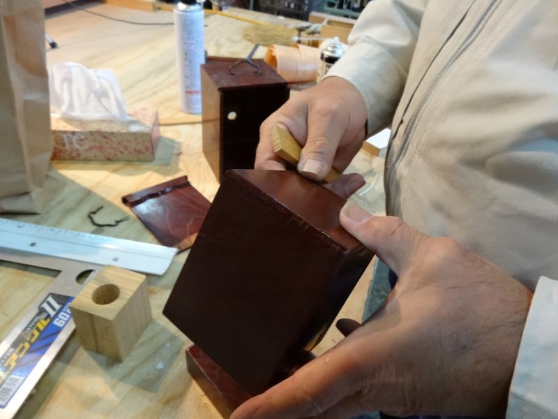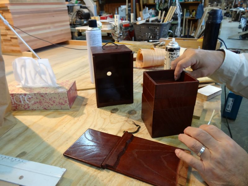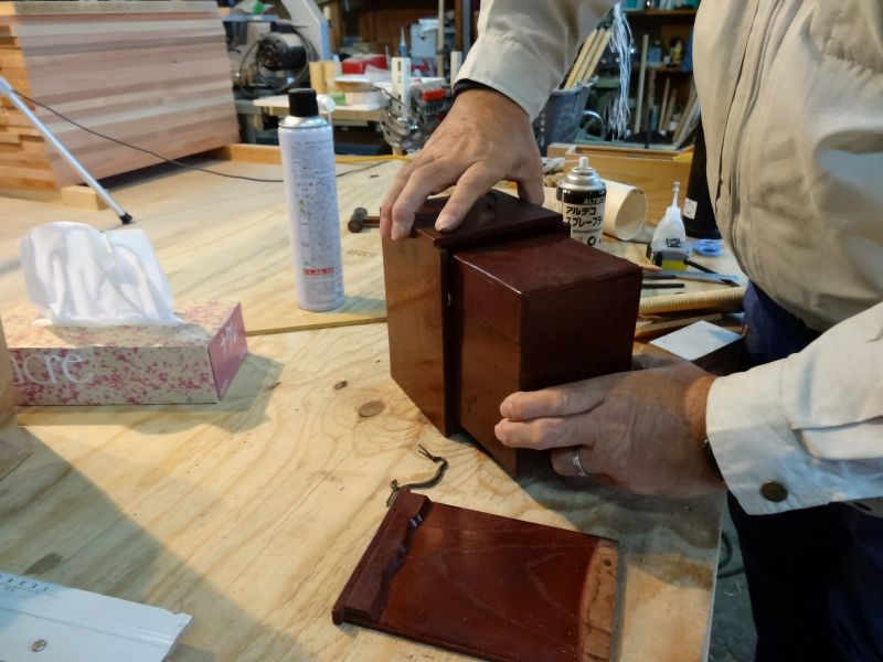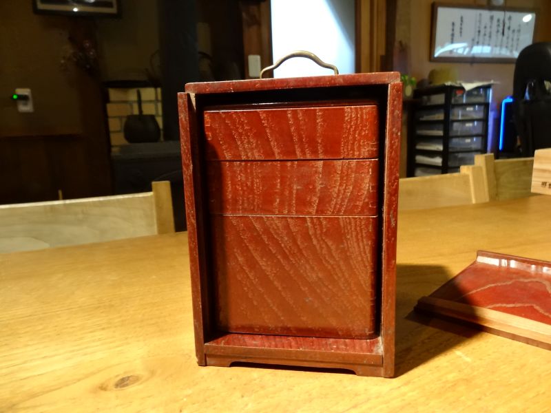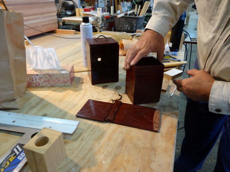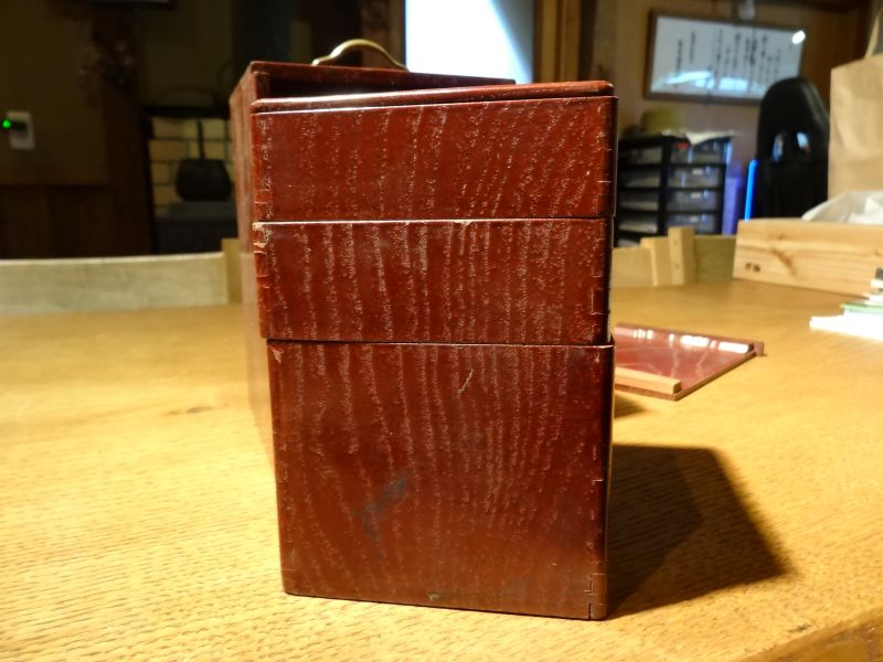 昔の素敵な弁当箱の修理を頼まれました。底板を付けなおしたり、取っ手を付けたり、スライド蓋の下部板を付けたりと直すことで来たのは、古い取っ手などを取り置いたものがあって、元々の箱がアラレ組で確りと組まれて丈夫だったからです。木で作られたお弁当箱の細やかな細工の素晴らしさは、日本が元からSDGZの考え方が出来ていた証拠です。杢目の木の流れが揃っているところが凄いですね。