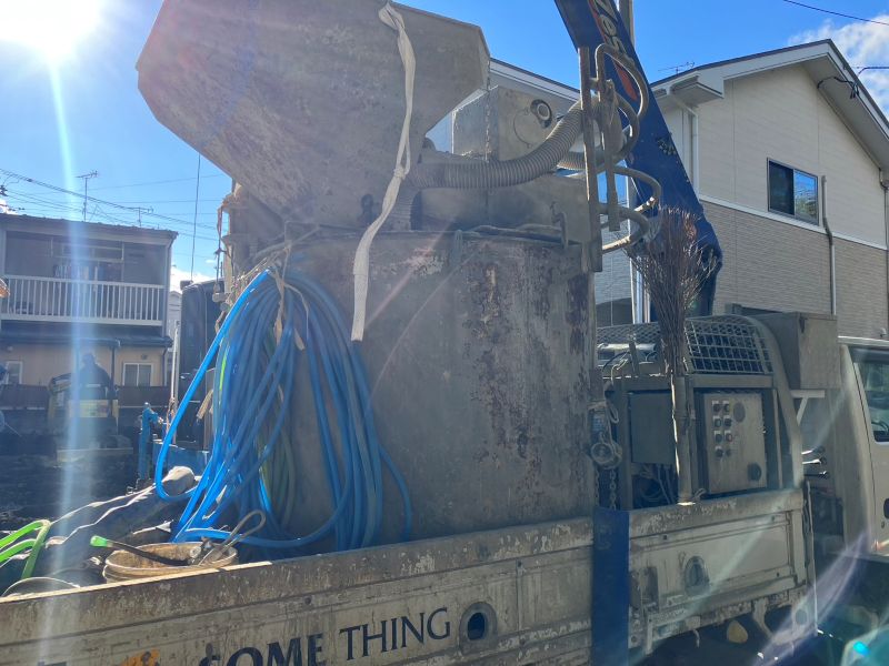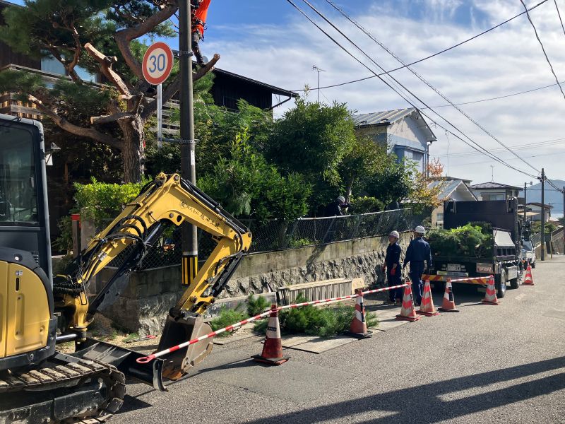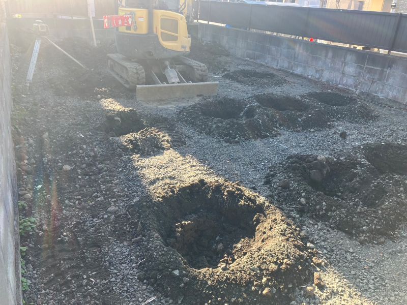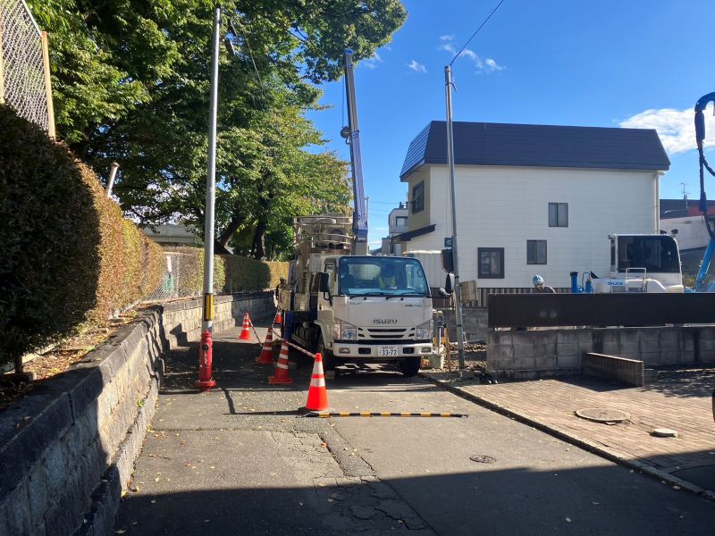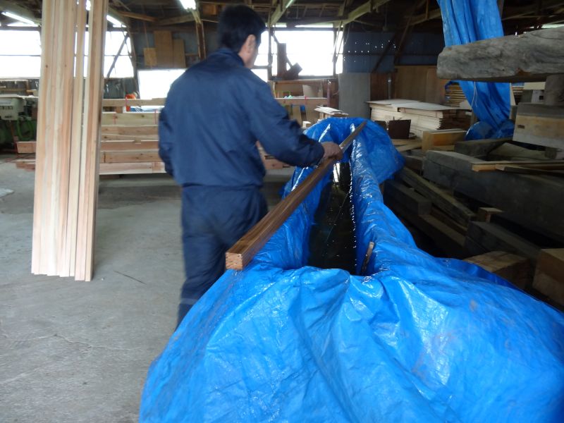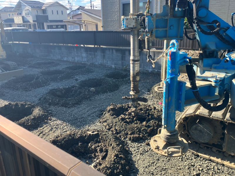 鉈屋町での新築工事現場では、地盤改良工事が行われました。極小地にて、全面道路を通行止め申請して、道路全体も使う工事で誘導員も立てて工事管理いたしました。明治期まで中津川の氾濫に悩まされた地域なだけに表層より数メートル下が軟弱地盤でしたが、皿に下方面は頑丈そうな感じでしたので、こうして安心と安全を確保できました。そして、今は中津川上流の森が大雨による河川氾濫を防いでくれているのですが、今回の木組み構造はその森からの赤松が準備されています。