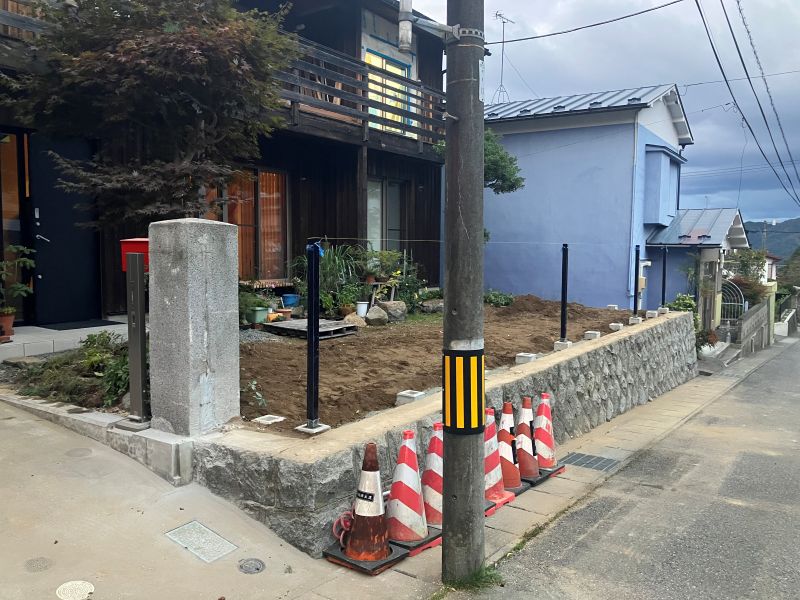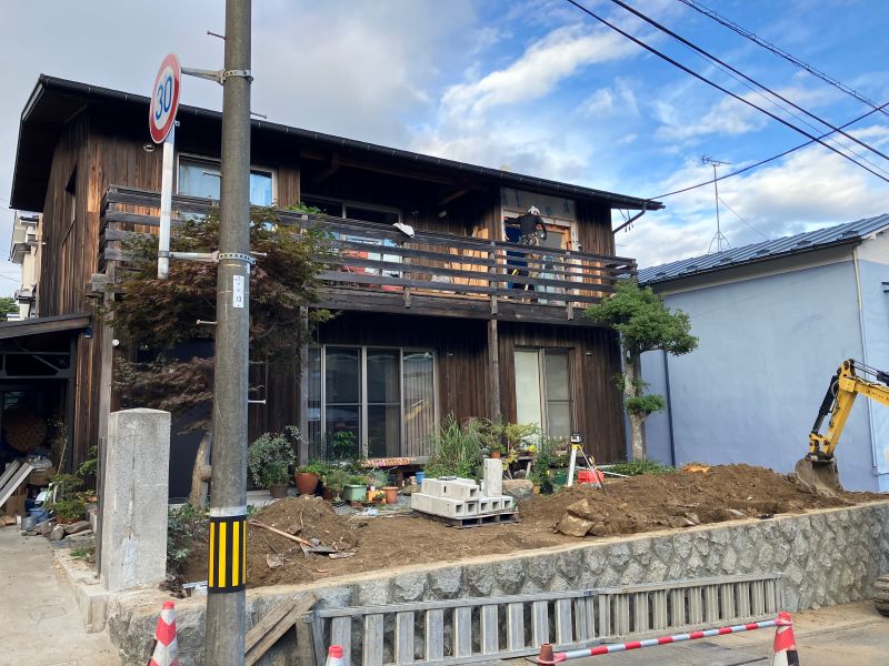 先日のウッドロングエコを塗布した板塀工事が行われるのは宮古市のS様邸です。外部の庭木を剪定処分して板塀の基礎を取り付けて支柱を立て込んで準備が進みました。同時に2階の窓も大きな掃き出し窓に取り替えています。沿岸の業者さんに工事していただいてもらっています。