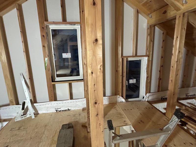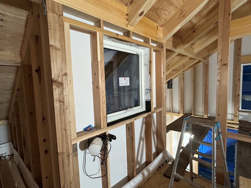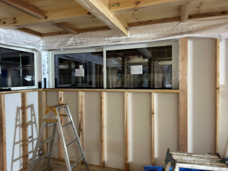 城西町の新築現場では、樹脂サッシの取り付けが進んで、外断熱負荷断熱も出来7ているので、外部囲いが出来てきました。この窓の熱還流率は0.79W/㎡・Kという数値のトリプルガラスの高断熱樹脂サッシです。これは、当社標準の断熱性能です。冷暖房が窓から逃げると言われて久しいのですが、こうして、日本の窓の性能も高くなりましたし、枠の厚さもすっきりとシンプルになって、樹脂枠内部の空気層の位置も改良されて冷輻射が抑えられています。過去には問題点も指摘されていたことが改良されての今です。今後も断熱基準が高くなってZEH基準がが当たり前になりますから、より高い断熱性能が求められてくるに違いありません。日々高みを目指し研鑽と実行を怠りなく進めたいものです。※現場便りは諸事情にて書けずに杢創舎日記で現場の事をお伝えさせていただいております。