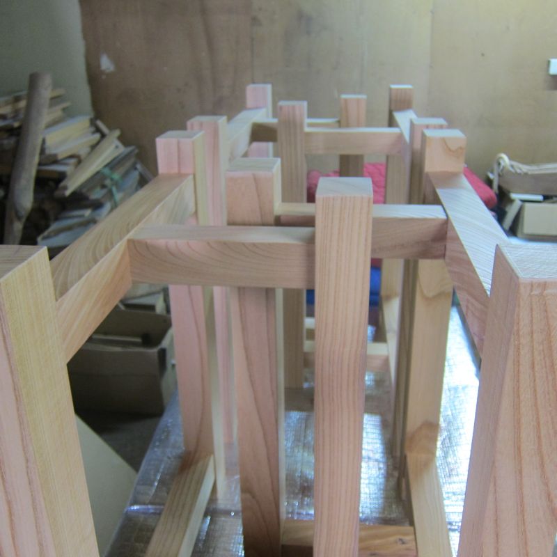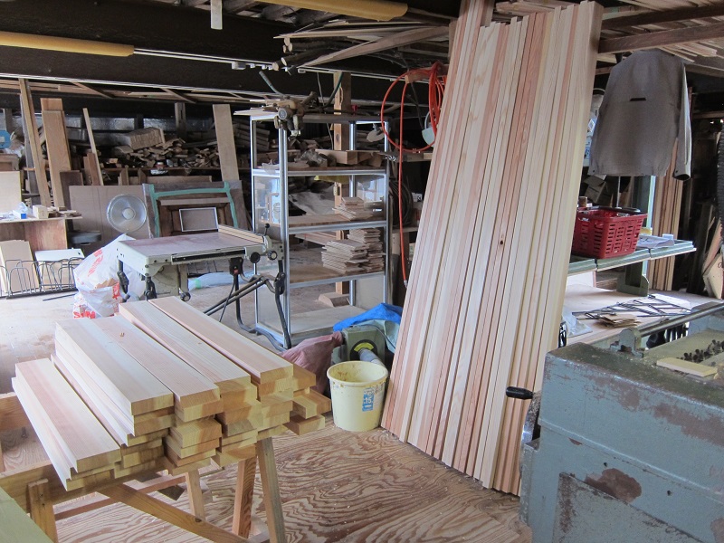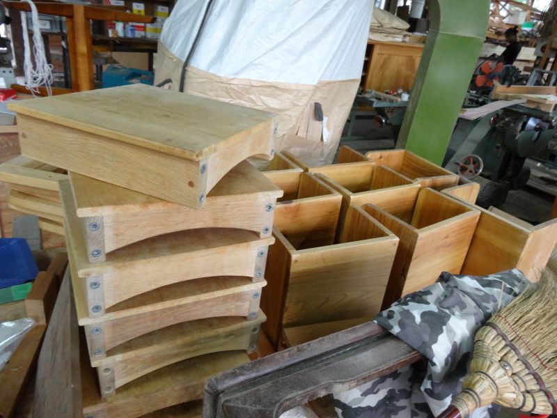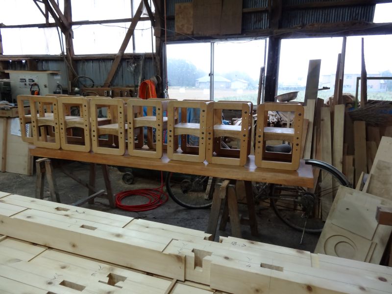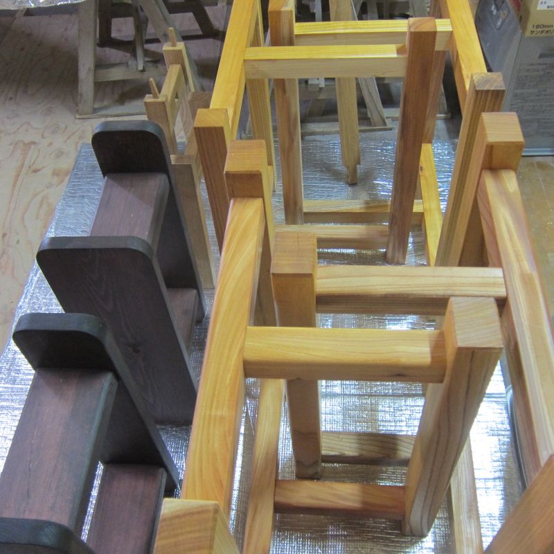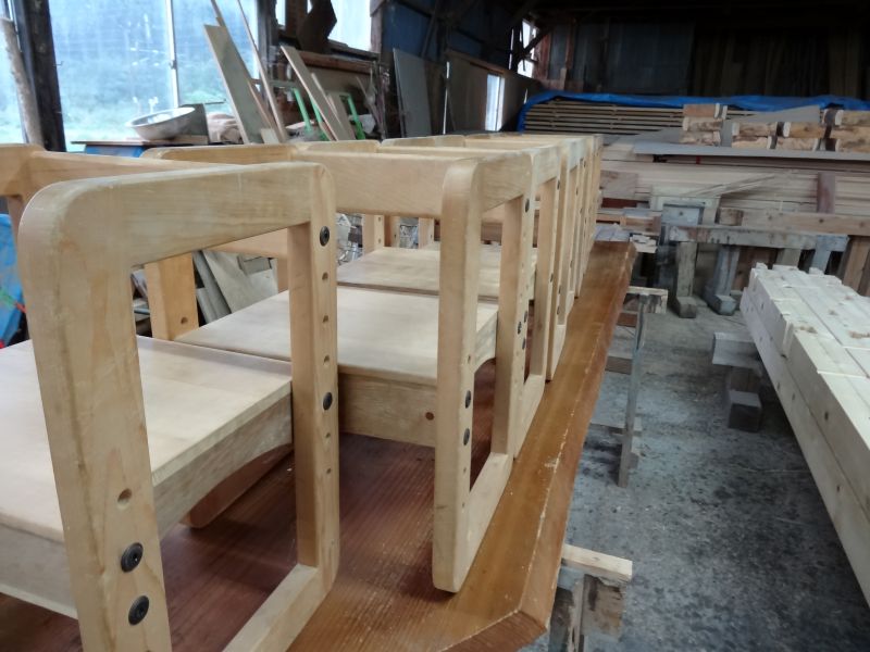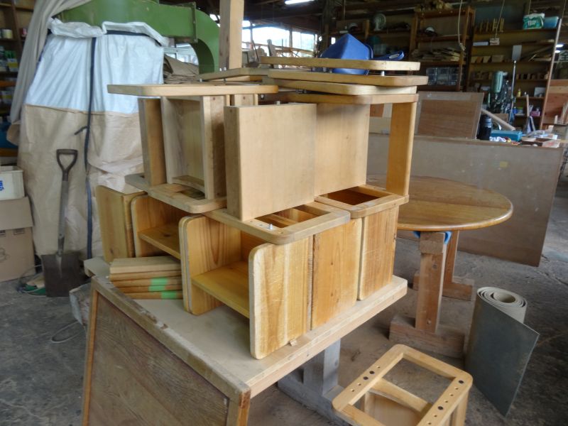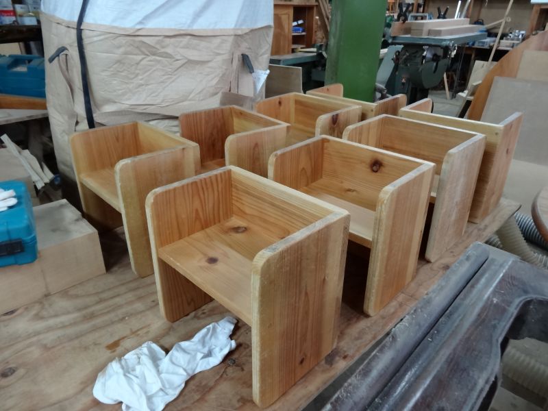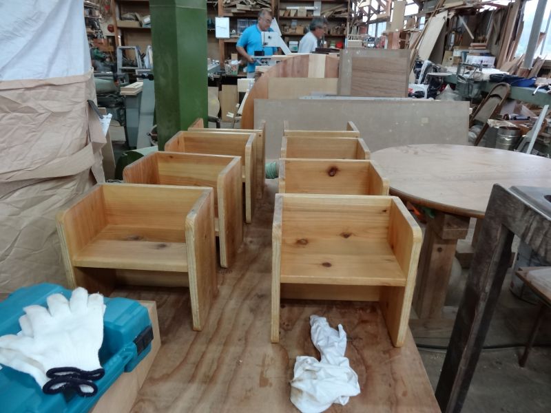 保育園さんにご依頼いただき、以前制作納品した子供椅子の修理修繕をさせていただきました。拭き漆塗りの乾く合間に行わせていただきましたが、この量です。