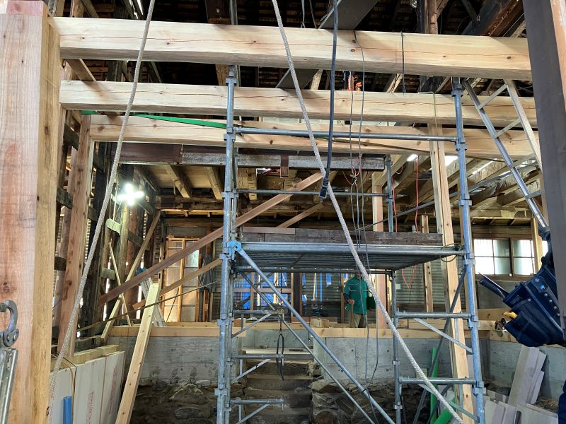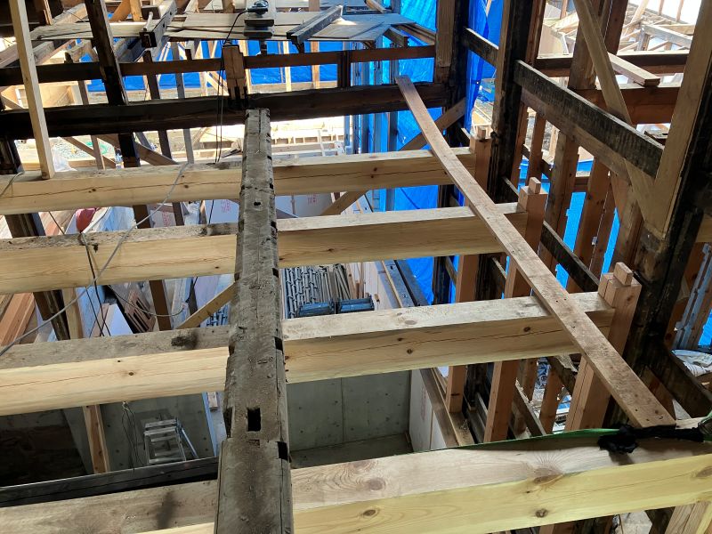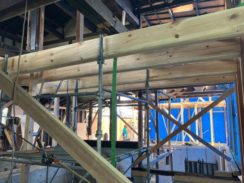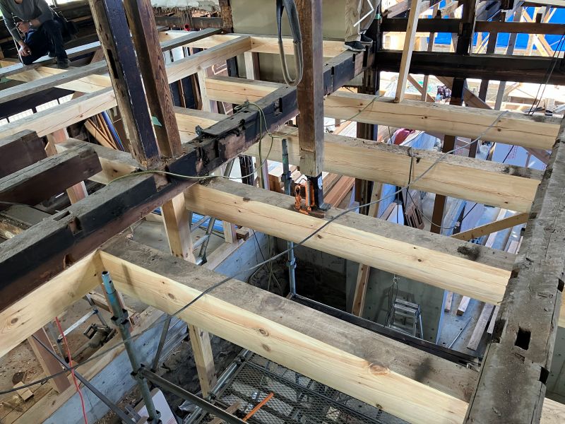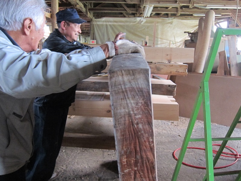 若手や車椅子大工の墨付けと手刻みが進められていましたが、先日から熟練大工が手刻みに参加しています。長年培ってきた年季の技はその手早さです。見ていると無駄なく流れるような手早さで次から次にあっという間に刻みが進んでいました。