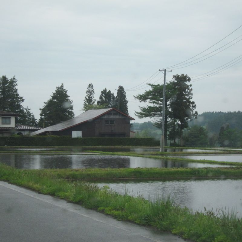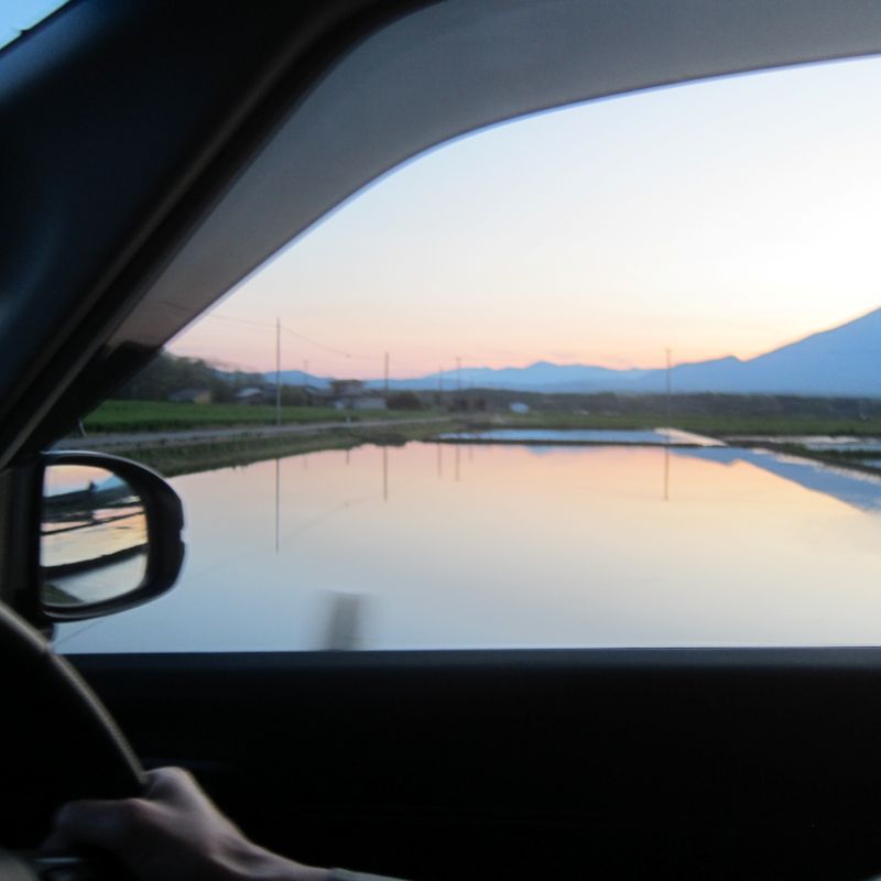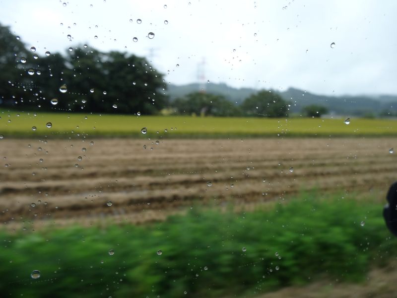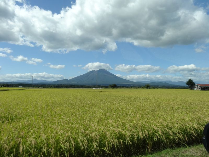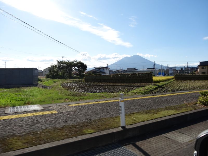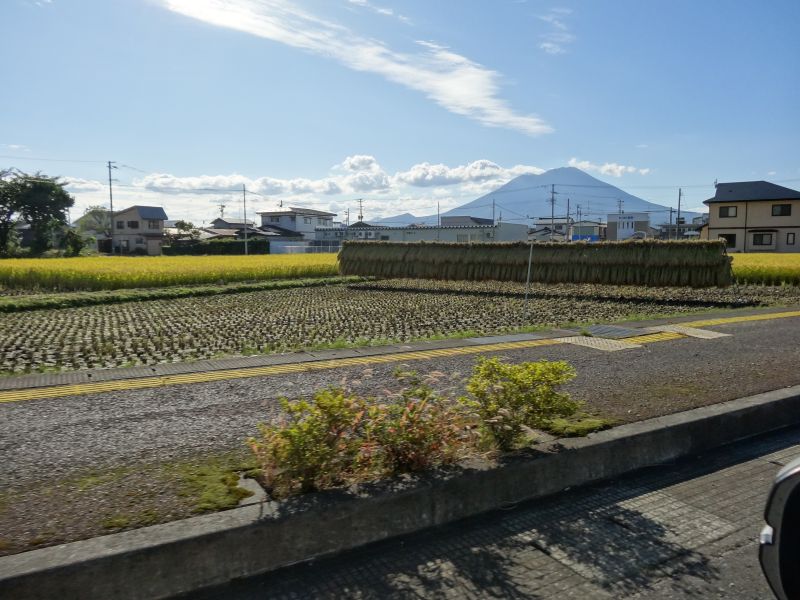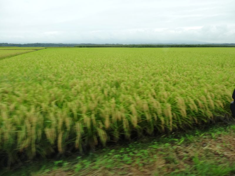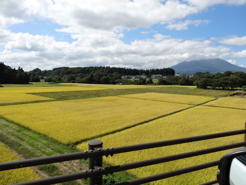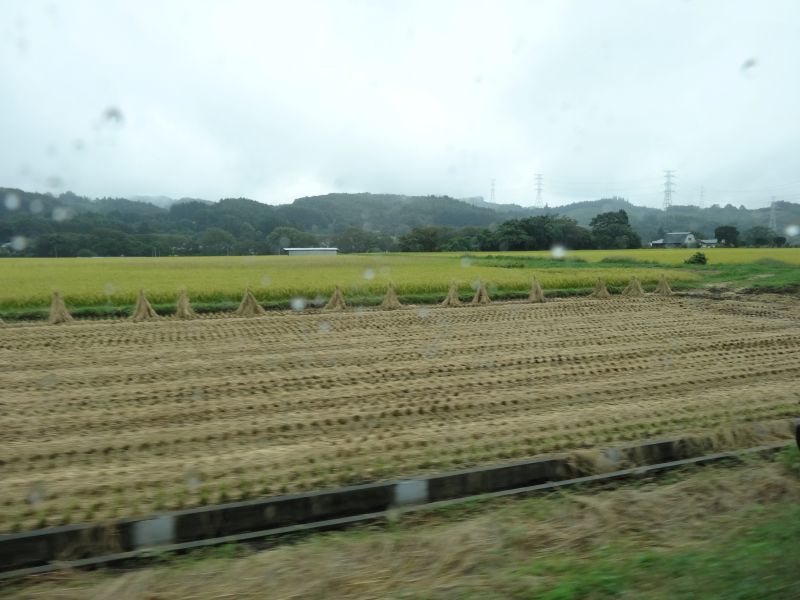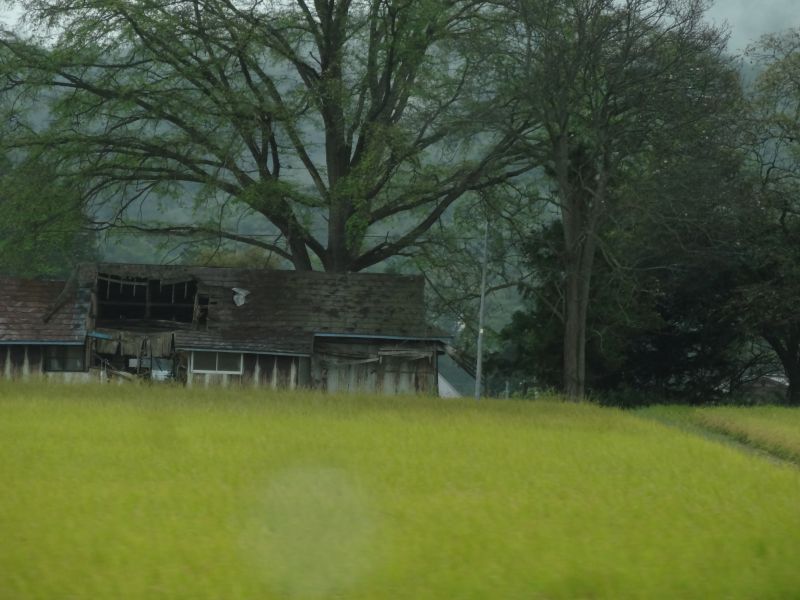 前日の大雨で倒伏が出てきて心配していたのですが、一部稲刈りが進み始めましたね。稲光る光景と、稲の中に浮かぶように見える山や家がこの地域の村の姿であるかのように美しく見えます。稲の海を漕ぐかのような風景が広がる村の景色です。
