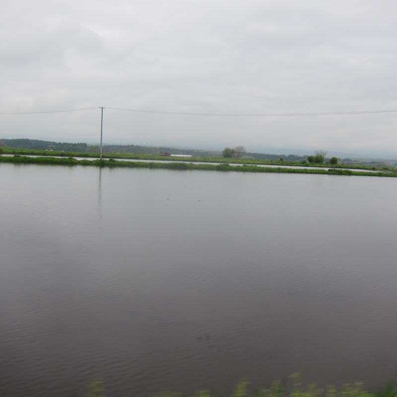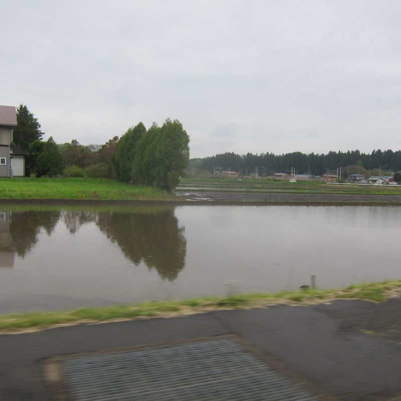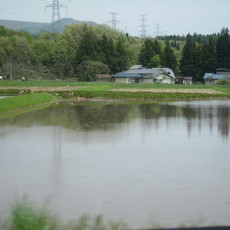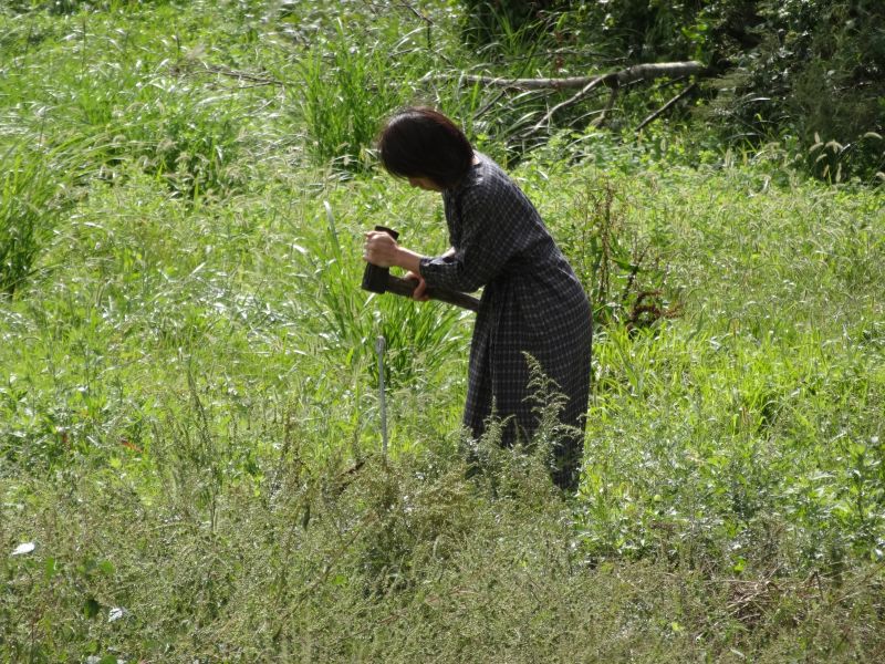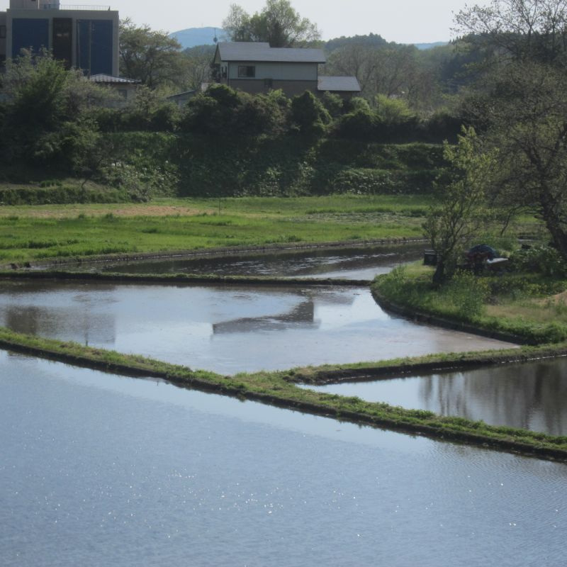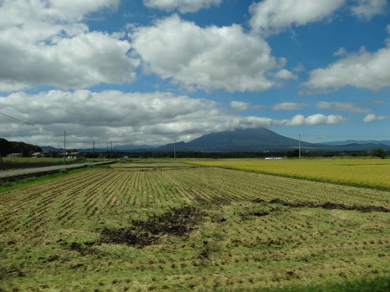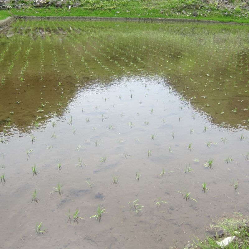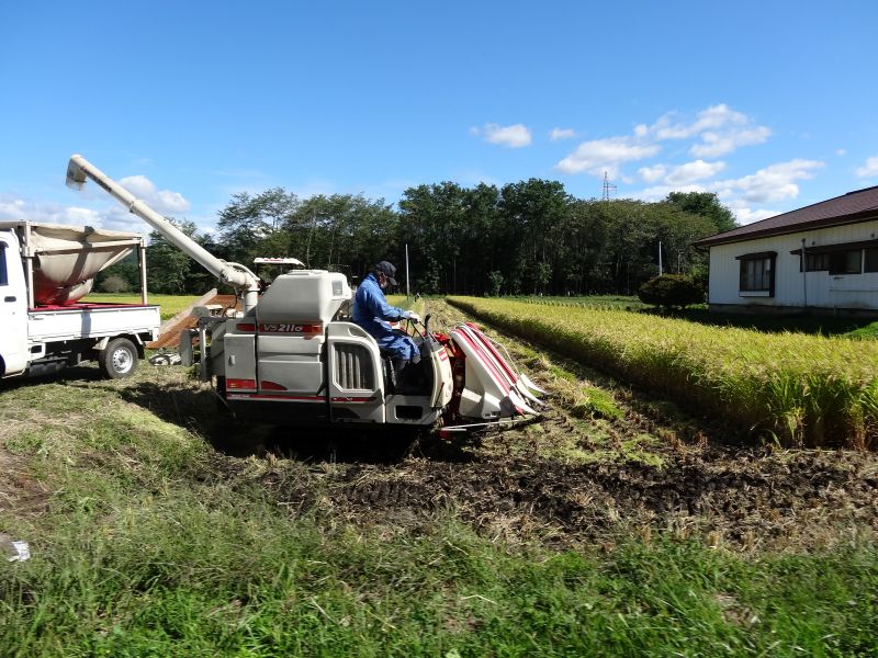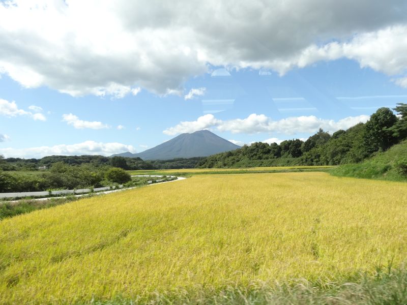 前日の大雨で倒伏が出てきて心配していたのですが、一部稲刈りが進み始めましたね。稲光る光景と、稲の中に浮かぶように見える山や家がこの地域の村の姿であるかのように美しく見えます。稲の海を漕ぐかのような風景が広がる村の景色です。