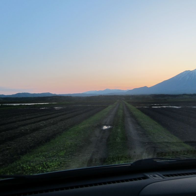 この時期は農家さんの稲刈り機搬送車とのすれ違いが増えてきます。そして、稲刈り中の風景とその後の風景も増えます。