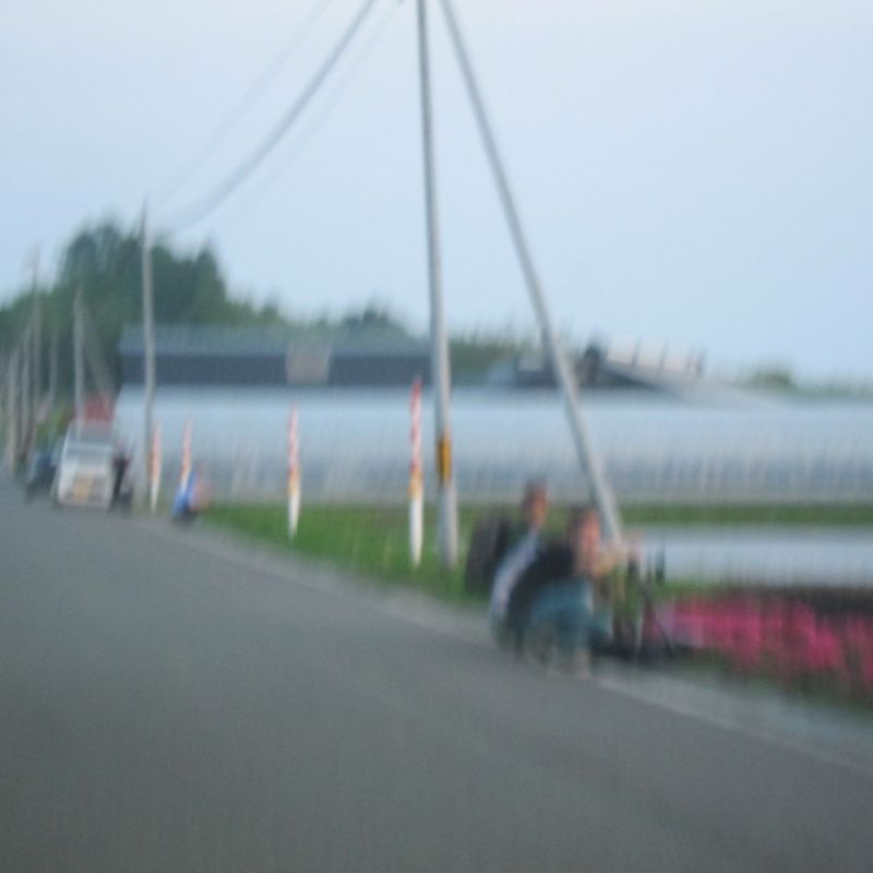場内整備の様子と霧に包まれる町の写真です。お陰で場内は広々しています。使えない機器から取り外した備品は 後ほど役に立ちます。