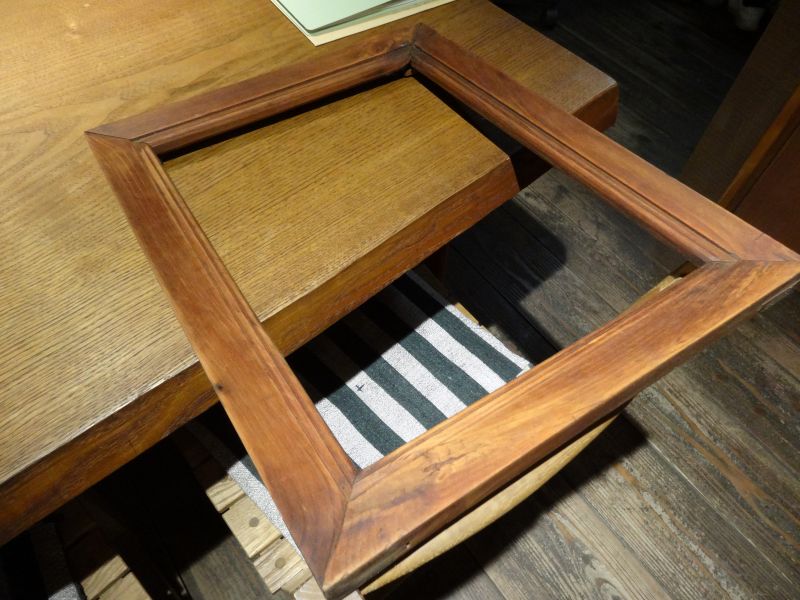 まな板や古い木の小さなテーブルなどの修理もさせていただいています。今回はまな板の削り直しと隙間が空いていたところを埋めて天板を綺麗にする修繕をさせていただきました。それと木のフレーム額も・・・