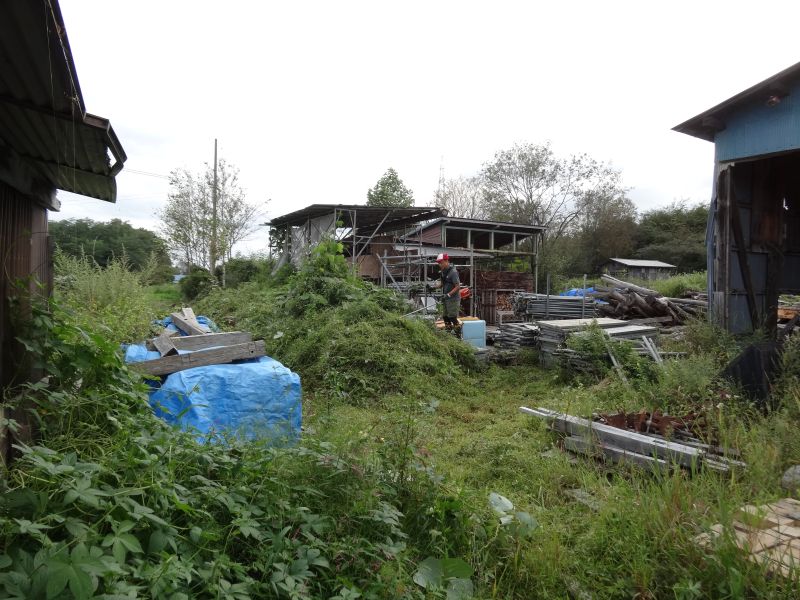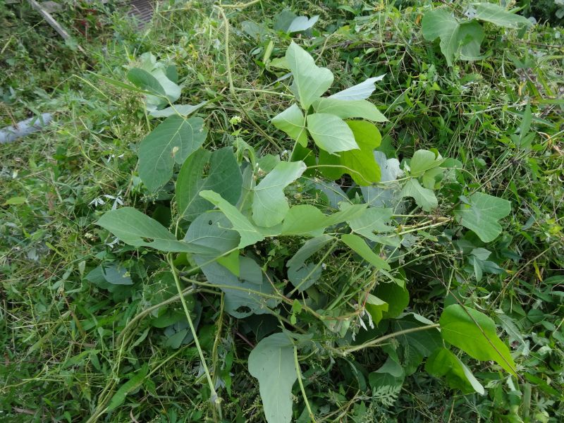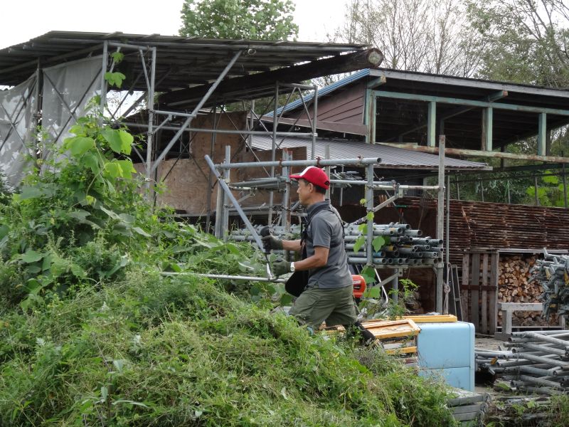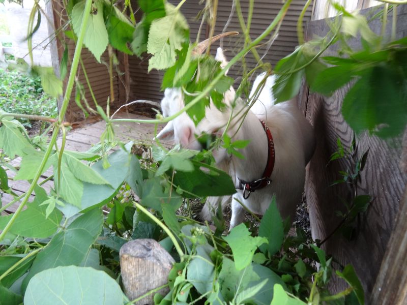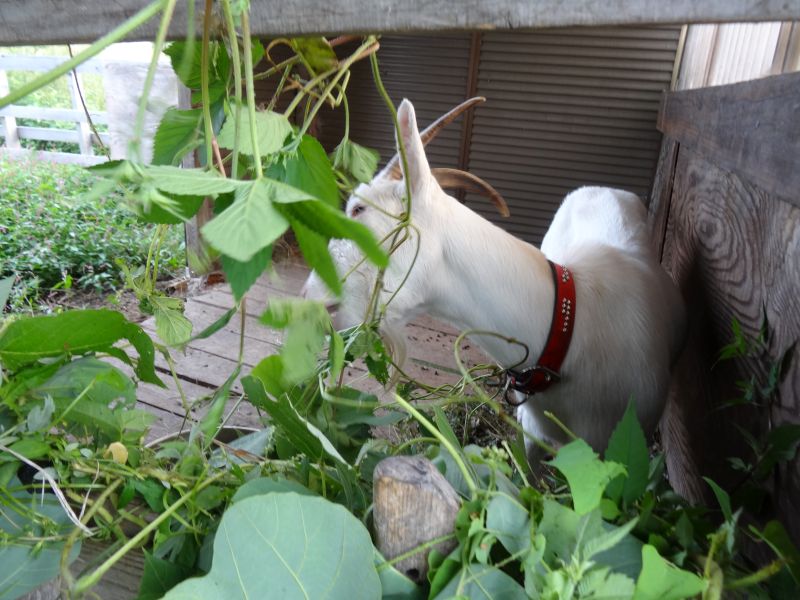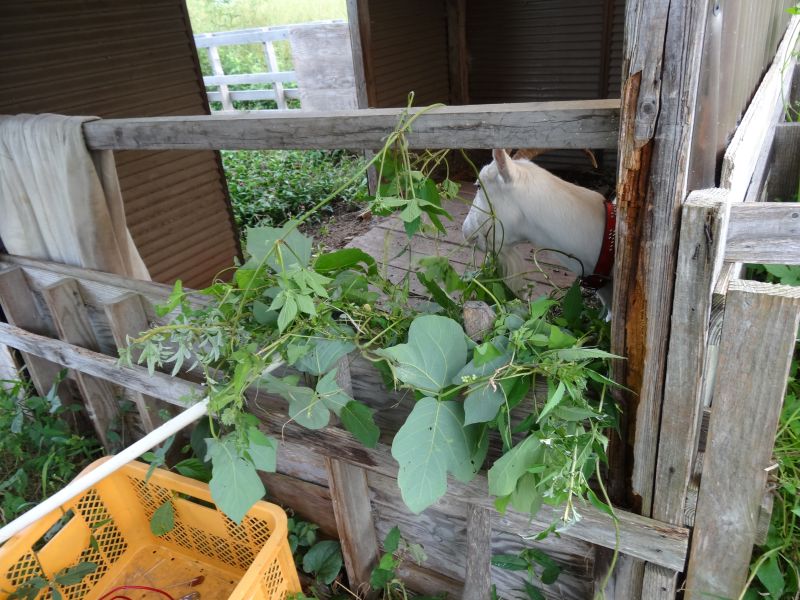 場内には葛の蔦が絡みついて困ることが多くあるので、早めに刈り払いするのですが、山羊はこの葛がだい好きです。