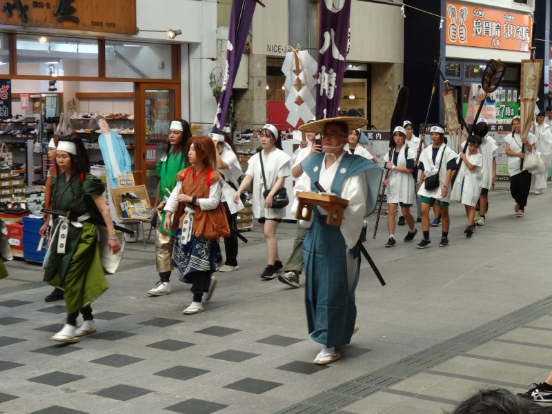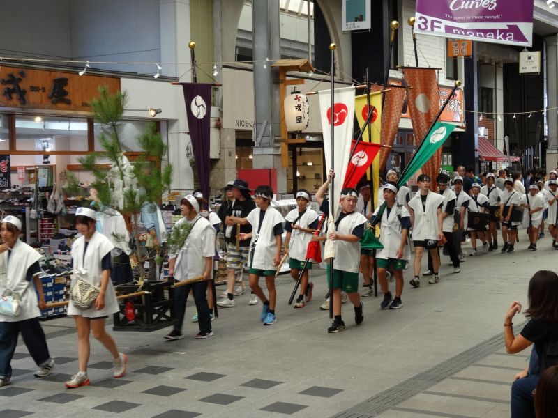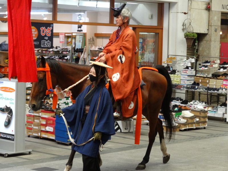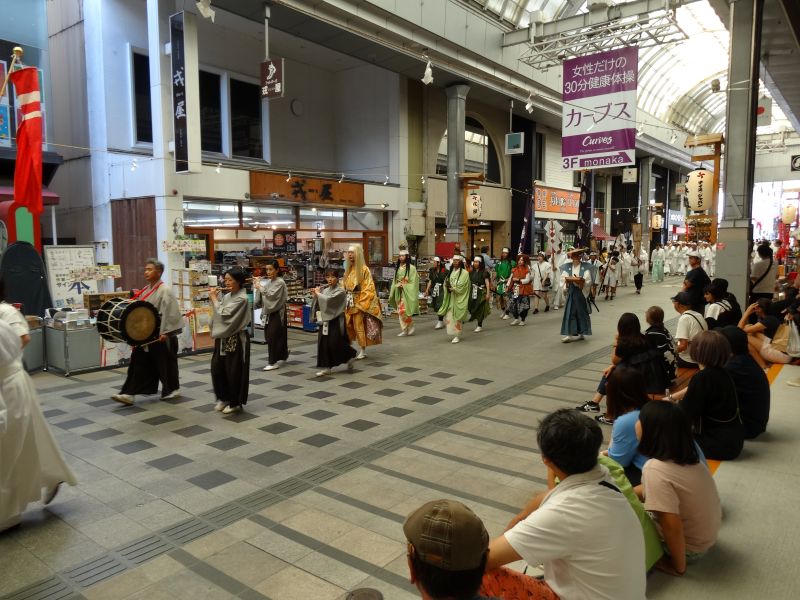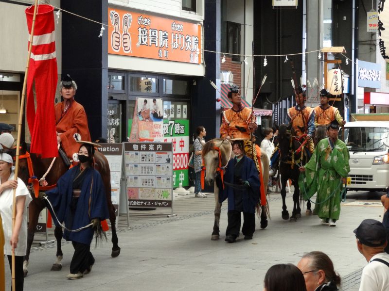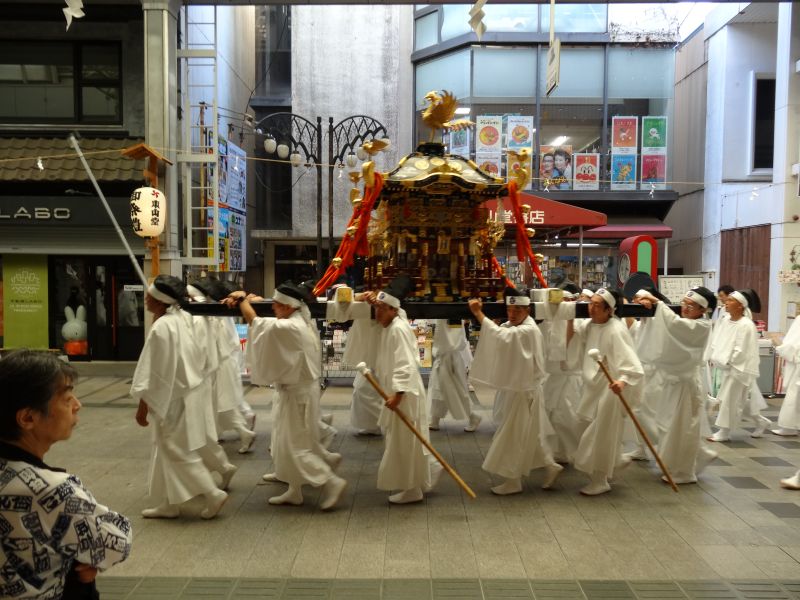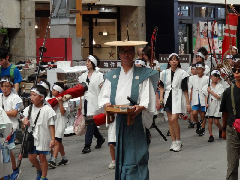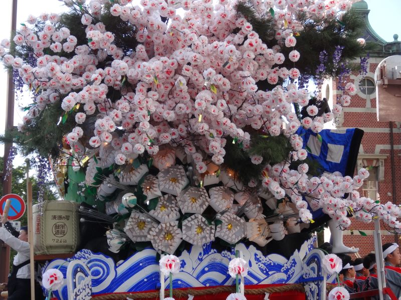 遠くから聞こえる「ヤーレヤーレ」と太鼓の音に山車だと気が付いて、杖を突きながら肴町商店街アーケードを急ぎ足で、旧岩手銀行レンガ館方向に向かうと、盛岡秋祭りの山車が、丁度その前を渡る瞬間に遭遇していい写真が写せました。