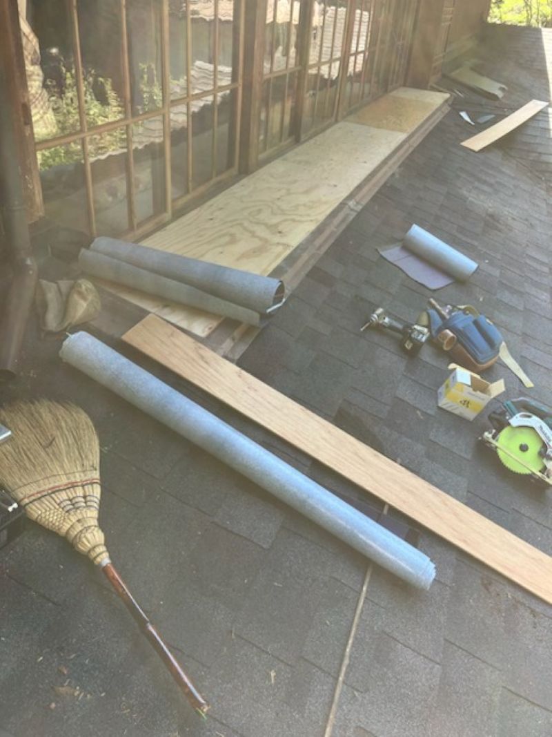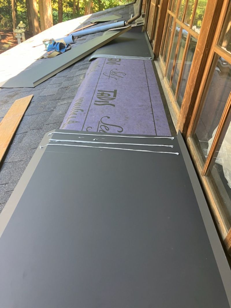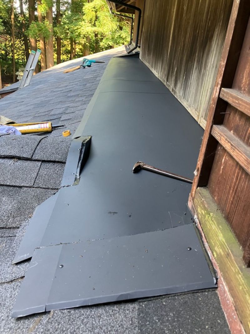 先日の板金曲げ機で加工した板金で雨漏れ修理行いました。古く傷んだ板金を剥がして下地ごとと直して、防水紙を張った上に加工した板金を張り直す。これを、大工のみで行い板金屋さんは来ていませんから、コストは押さえての修繕でした。水切り板金の立ち上がりも絡むので、木製建具や雨戸も切り詰めているのですが、これも大工でできているので、この様な修理には大活躍です。大工が多能工と変化しての仕事は昔から地域で重宝されて愛されてきました。伝統の技のみならず未来へと継承したいと思います。