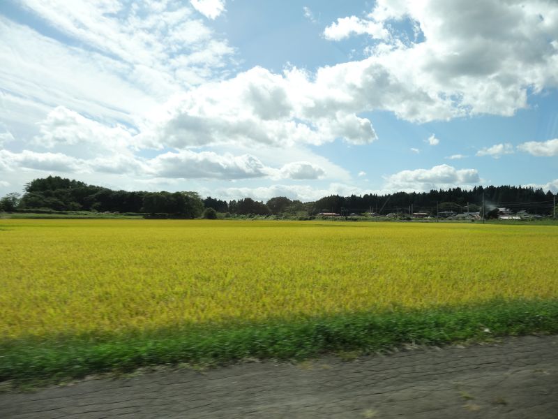 周囲の田圃は豊作の雰囲気を感じます。日が差すと黄金色に輝く身のの秋です。