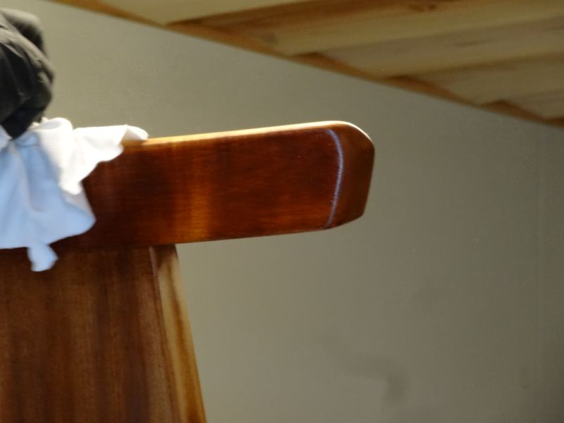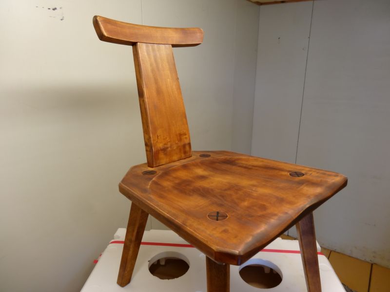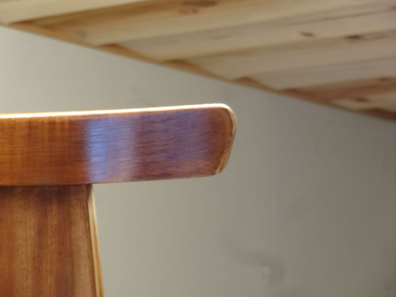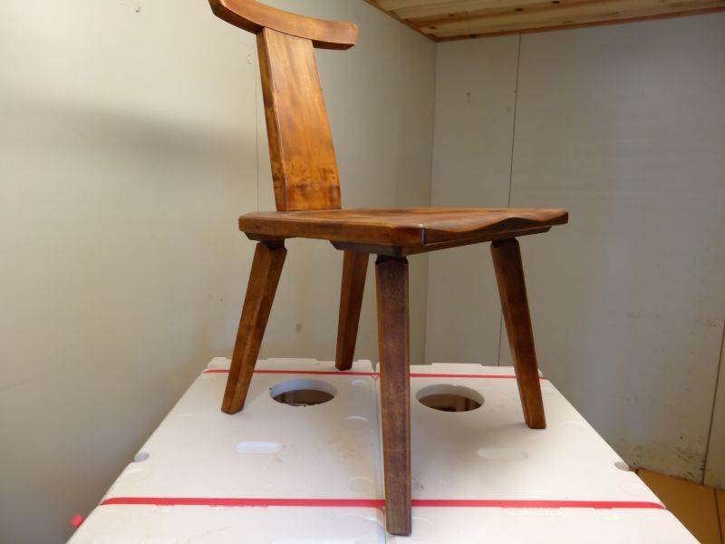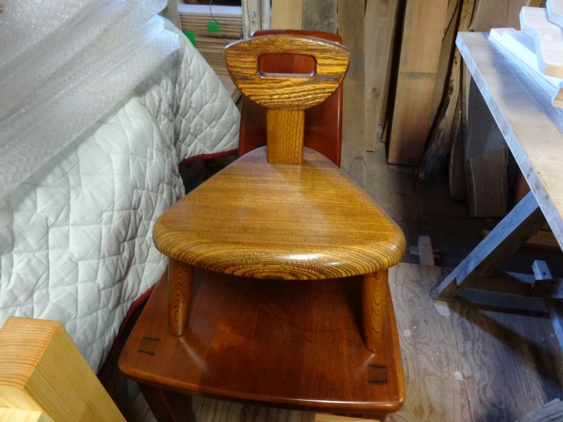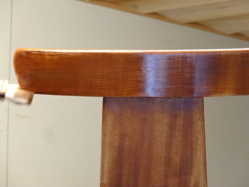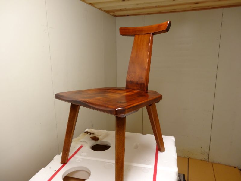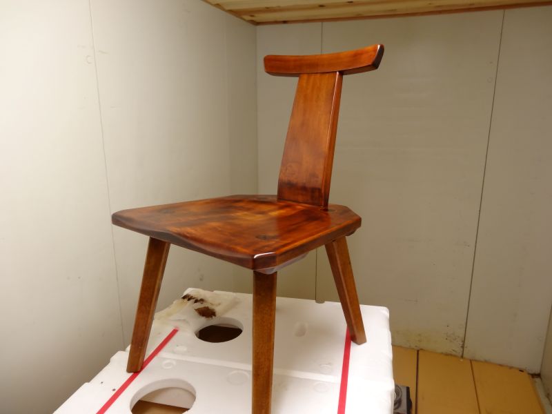 岩手県では、地場材を使用した木工製品の普及に力を入れておりますから、こうした子供の椅子も該当するのではないでしょうか?しかも、丁寧に扱われることは想定できないので、今回のようにメンテナンスは必須です。その間に拭き漆の椅子は仕上がりました。重ね塗りは今回は2回でこの雰囲気です。