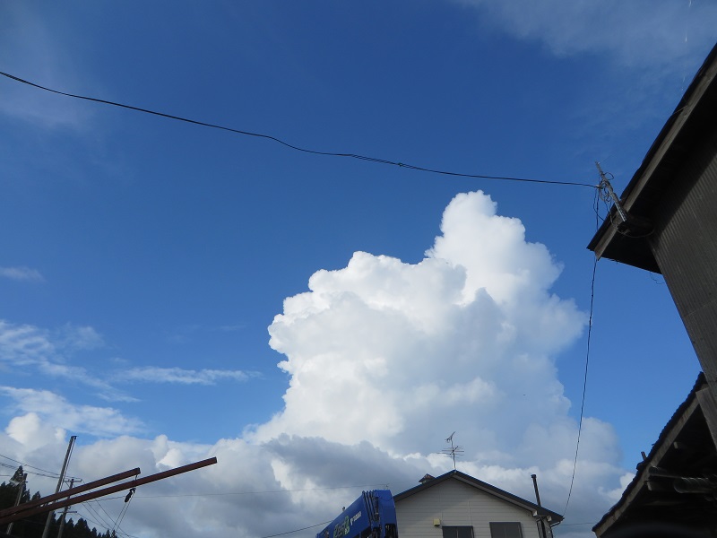 昨日の好摩は18時32.4mmと県内最高値の豪雨でした。雨が降り出す前の青空には大きな入道雲が湧き上がり、姫神山の麓から雲が登りあがり、正しくいまから降るぞの合図もありました。
