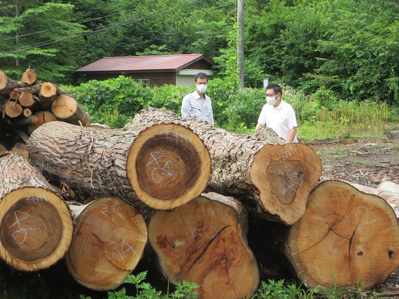 川留め稲荷神社の境内から支障木として伐採された丸太を見て来ました。見事な巨大木です。盛岡藩の時代から川が氾濫して難儀を重ねて来たとの歴史が物語る鎮守の森も90年の年輪が育つにつれて根が張り近隣の道路さえ押し上げる勢いともなれば、伐採も致し方なく思うのですが、ご神木ですから粗末にせず確りと生きた証を何らかの姿として蘇らせて参りたいと思いました。長材21本全て購入する予定です。