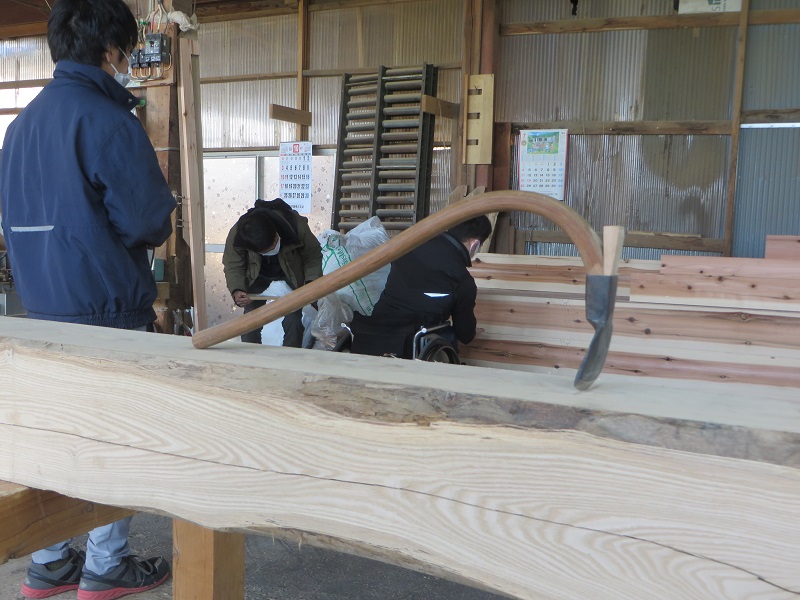 先週末の土曜日、東緑ヶ丘の新築工事の木材の清め式を行わせて頂きました。生きとし生けるものへの感謝の儀式であり、建てる家に使われる柱や梁の樹種やその木の謂れの説明をさせて頂く県産材を扱う上での出所がきちんと説明されるとても大切な瞬間です。そして嘘の無い真正直で正真正銘の地場材を説明していると、例えば赤松の前に立つと「この赤松が、85年盛岡市を水害から守ってくれました。」と必ず言わずにいられなくなるものです。お神酒と塩で木材の清めを行いがされた後、チョウナ立の儀を行います。これは、木を伐り倒す際に刃物を入れ込む人の気持ちの中に建て主さんのことは無い訳で、そうした部分を綺麗に白紙にした後は今後刃物を入れる大工の手と心には、施主さんの為に良い家を建てさせて頂きたいとの善の気持ちのみを込めるとの意味合いで、初の刃物入を行う事と相成ります。