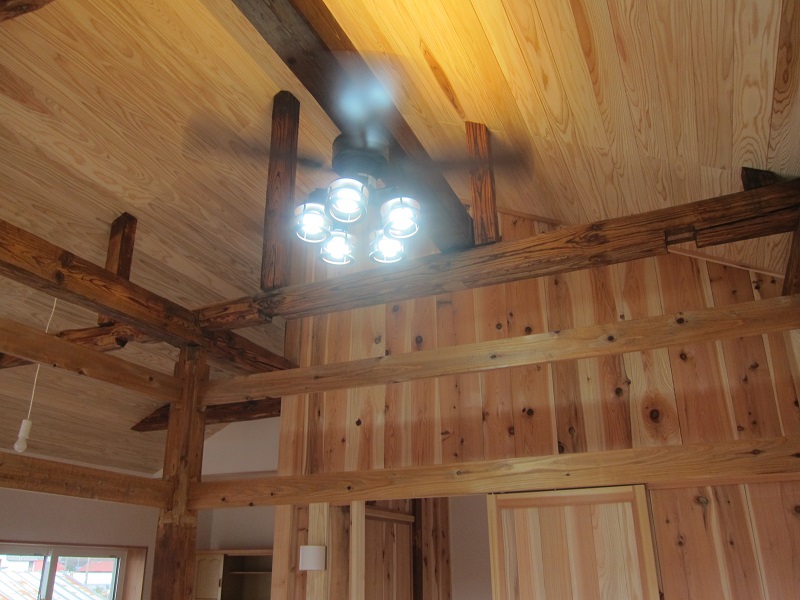 改修後の2階既存天井を外して斜め天井にして既存の屋根組構造を表しにしました。
