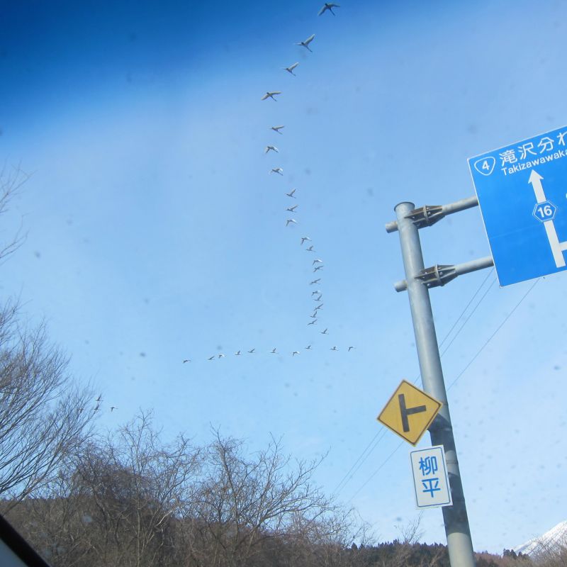 今朝の通勤路は、白鳥と一緒に好摩まで並んできた感じでした。好摩に着いて空を見上げると綺麗なVの字で飛んでいきました。道中の岩手山がもう岩鷲山になってきていました。
