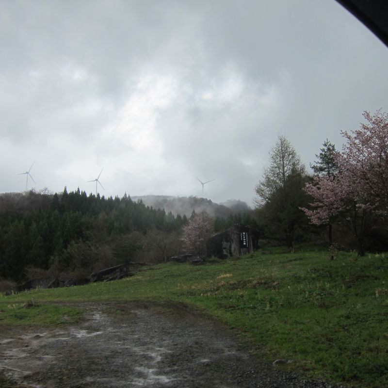 連休中日戸のさくらパーク姫神経由で岩泉の実家に行ってきました。満開時期を過ぎていましたが、これが山一杯に咲いたら見事だったんだろうなと感じる景色を霧被る道を走行致しました。風力発電の羽根が折れて落ちたニュースを見たばかりで、風力発電の風車が霧に包まれている景色も印象的でした。