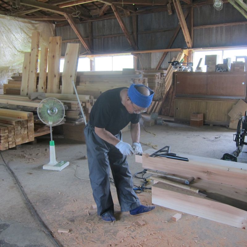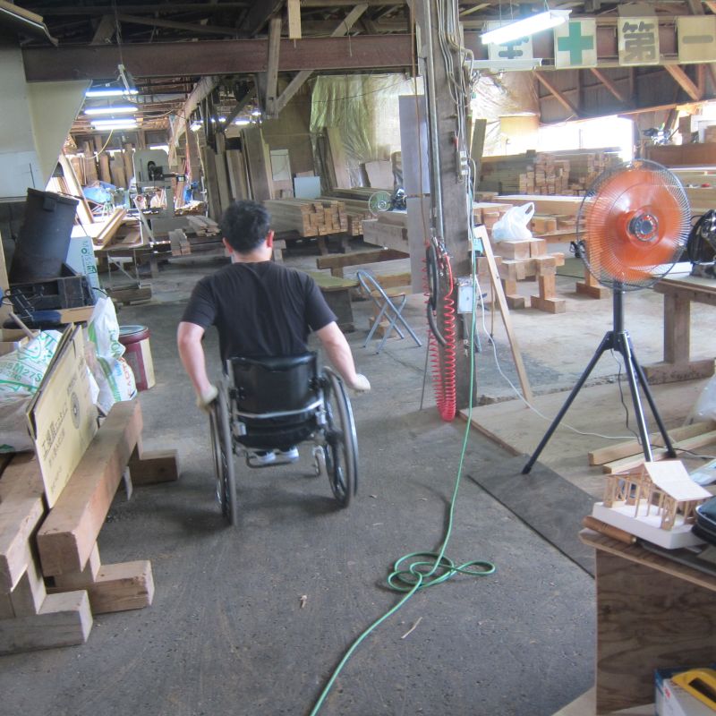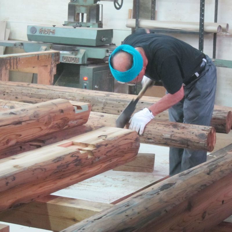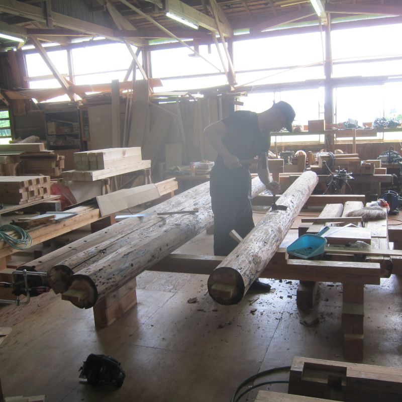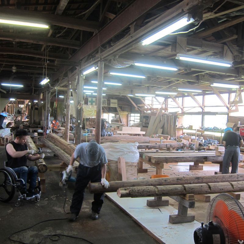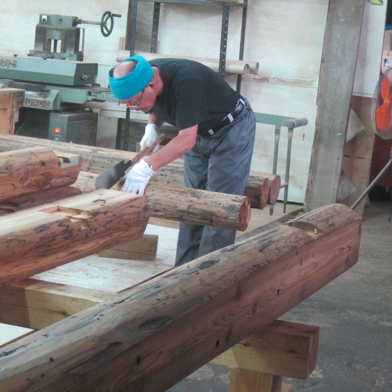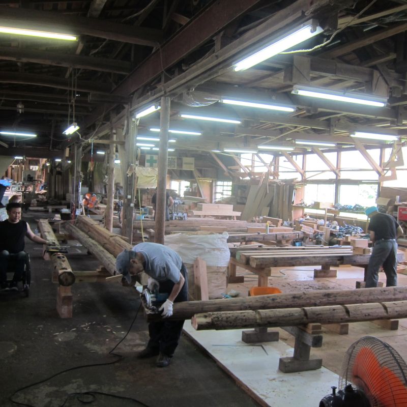 車椅子大工一人で刻ませるわけには行かないので、大工職人が応援に入って刻んでいました。来週建て方始まります。