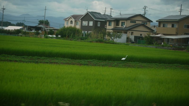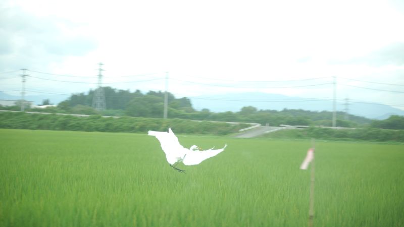 白鷺が田圃の中に居る季節です。空には吊り雲が見えていました。