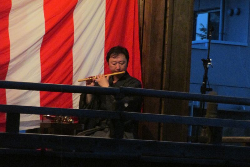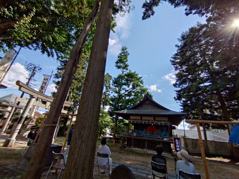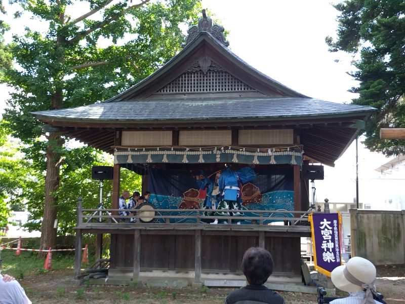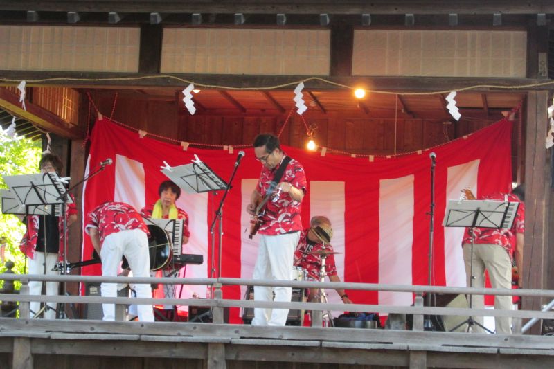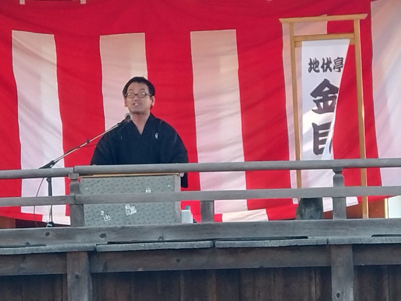 川留め稲荷神社例大祭の奉納演芸は、大宮神楽、講談、親父バンド、能、抜刀術披露の演目でした。
