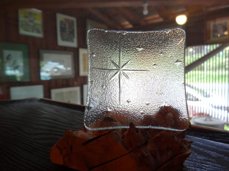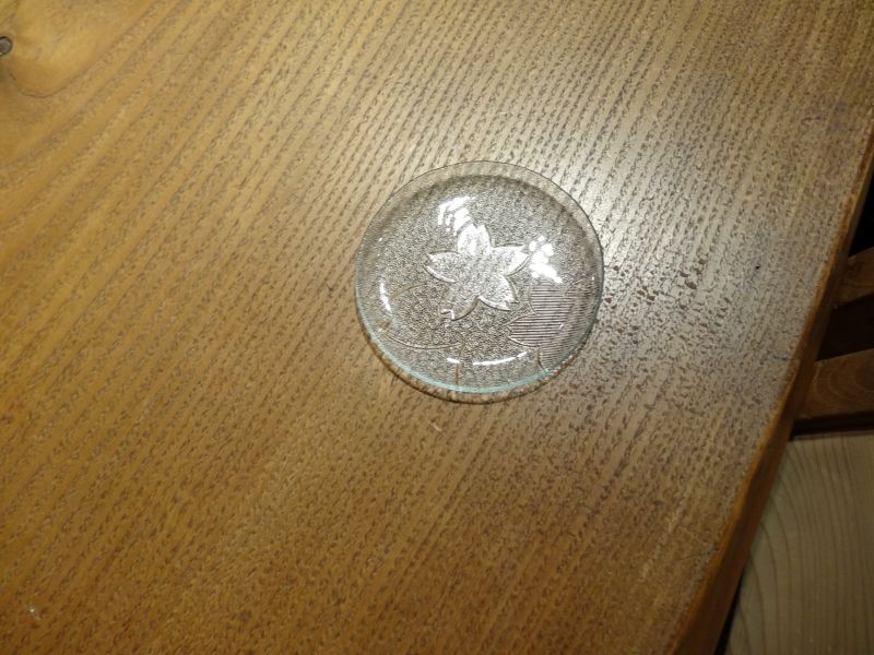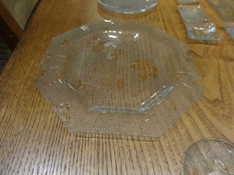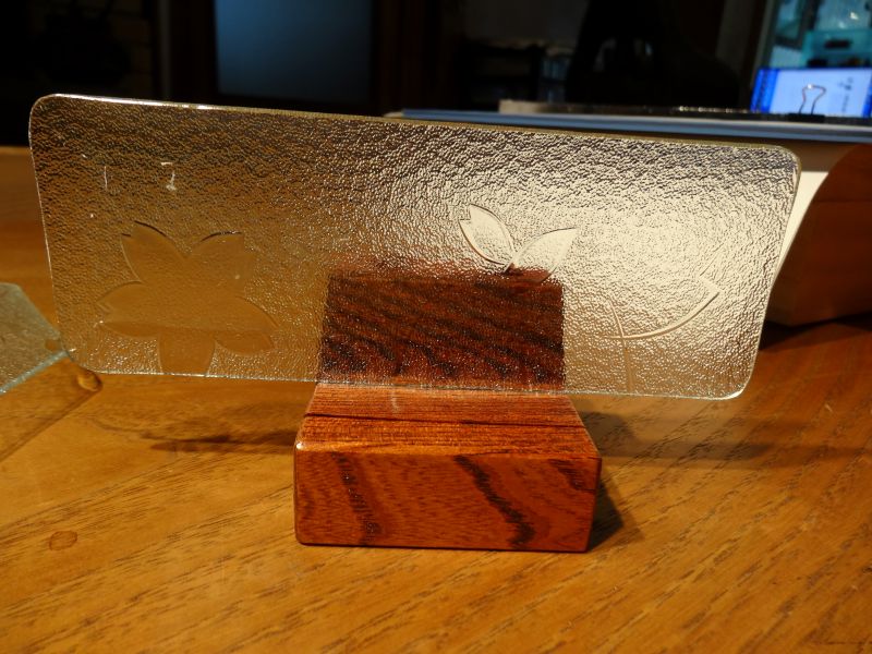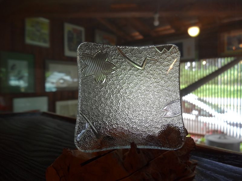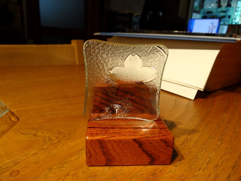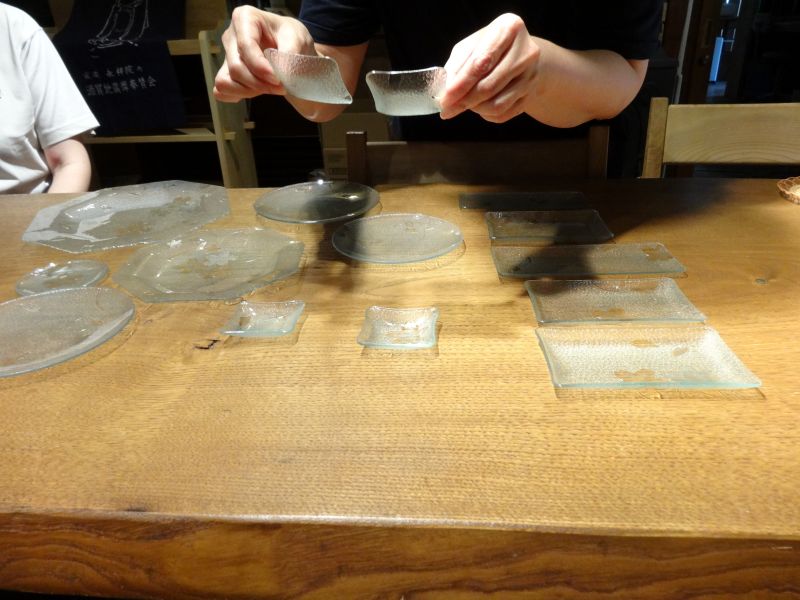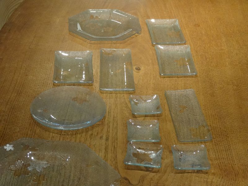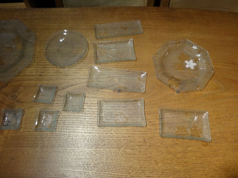 先日お預かりしたレトロガラスの建具から外した昭和ガラスを皿に加工していただきました。その名も「サクラ」で1960年代に造られたガラスとの事です。見事に蘇って本日持ち主様に選んでいただき、元のお家に戻っていきました。