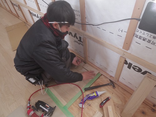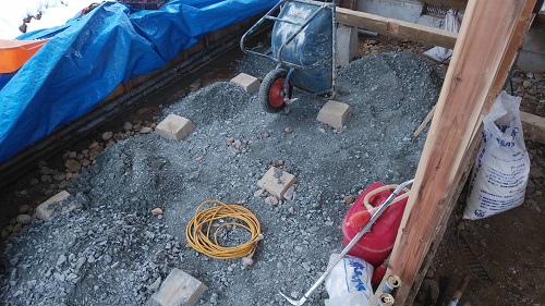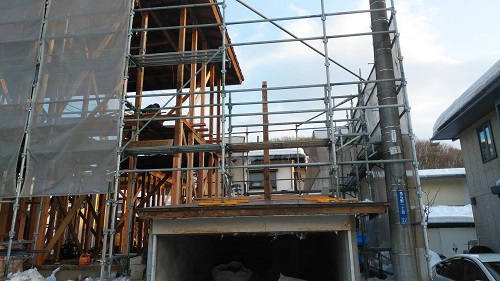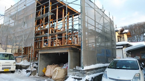 雪の多さは盛岡市に引けを取らない凄さです。除雪しながらの土間補強基礎工事が進んでいます。