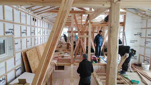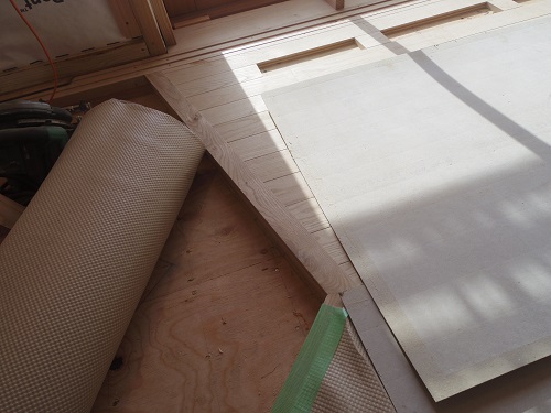 木製サッシが届きました。内部は屋根断熱を進めています。